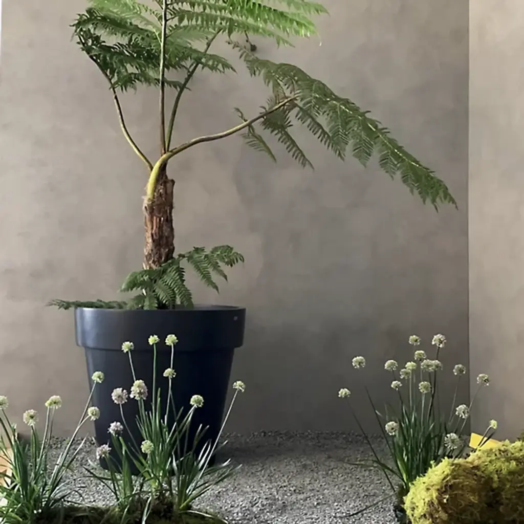 The Classic 50 Planter from Blinde Design scales up the traditional flowerpot silhouette to accommodate medium-sized plantings through its enhanced Fluid Concrete Composite construction. The familiar tapered profile and rolled rim detail preserve the classic character of a flowerpot, despite the contemporary material upgrade. This mid-range option bridges the gap between compact and large-scale garden containers. Built-in drainage technology handles water management while weather-resistant concrete withstands seasonal exposure. The increased capacity suits established plants or multiple smaller specimens.