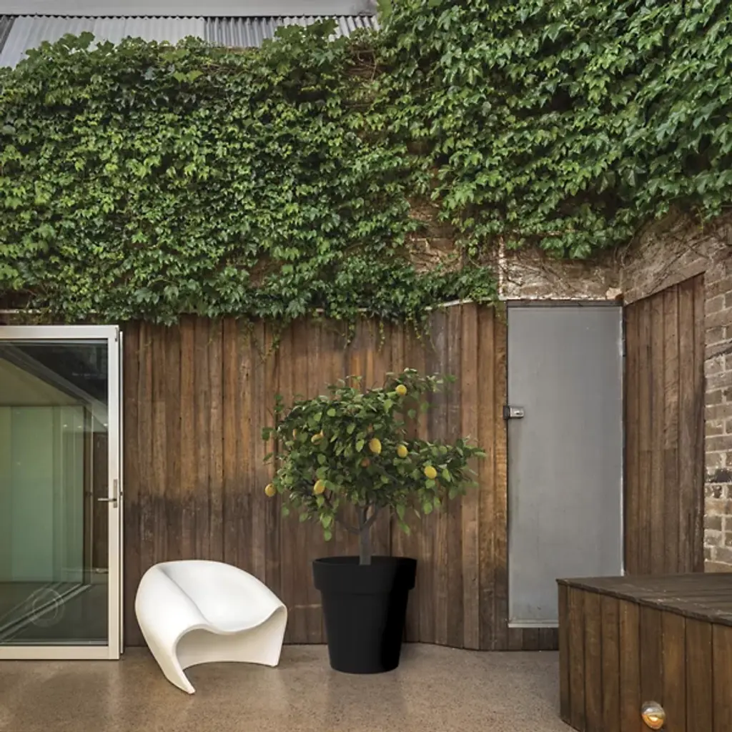 The Classic 50 Planter from Blinde Design scales up the traditional flowerpot silhouette to accommodate medium-sized plantings through its enhanced Fluid Concrete Composite construction. The familiar tapered profile and rolled rim detail preserve the classic character of a flowerpot, despite the contemporary material upgrade. This mid-range option bridges the gap between compact and large-scale garden containers. Built-in drainage technology handles water management while weather-resistant concrete withstands seasonal exposure. The increased capacity suits established plants or multiple smaller specimens.