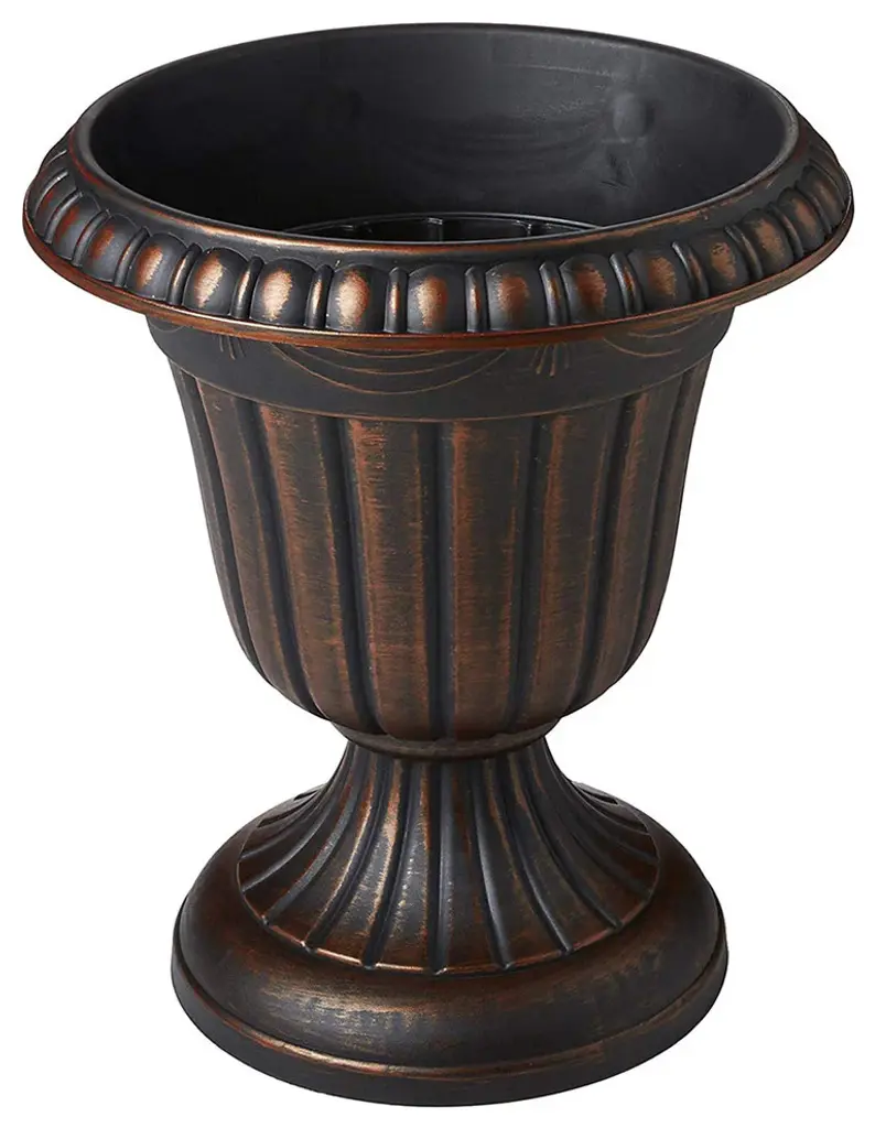 Featuring a traditional design this urn is an ideal statement piece for any entrance-way, living space, table centerpiece or garden. The high-quality synthetic material creates a sturdy product that can compete against weather and UV-rays. The two-piece pedestal construction is a classic design that adds style to any decor. Available in a variety of sizes to accommodate any size and shape of plant or flower.