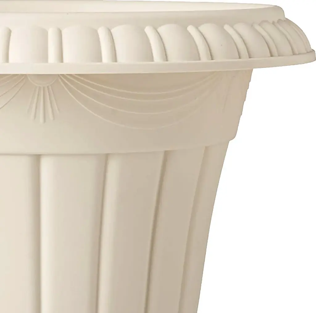 Featuring a traditional design this urn is an ideal statement piece for any entrance-way, living space, table centerpiece or garden. The high-quality synthetic material creates a sturdy product that can compete against weather and UV-rays. The two-piece pedestal construction is a classic design that adds style to any decor. Available in a variety of sizes to accommodate any size and shape of plant or flower.