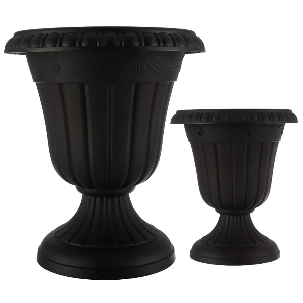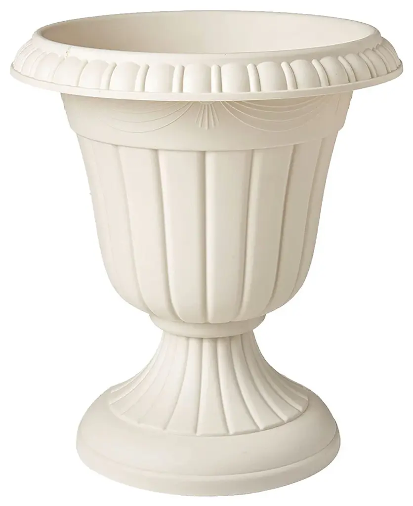 Featuring a traditional design this urn is an ideal statement piece for any entrance-way, living space, table centerpiece or garden. The high-quality synthetic material creates a sturdy product that can compete against weather and UV-rays. The two-piece pedestal construction is a classic design that adds style to any decor. Available in a variety of sizes to accommodate any size and shape of plant or flower.