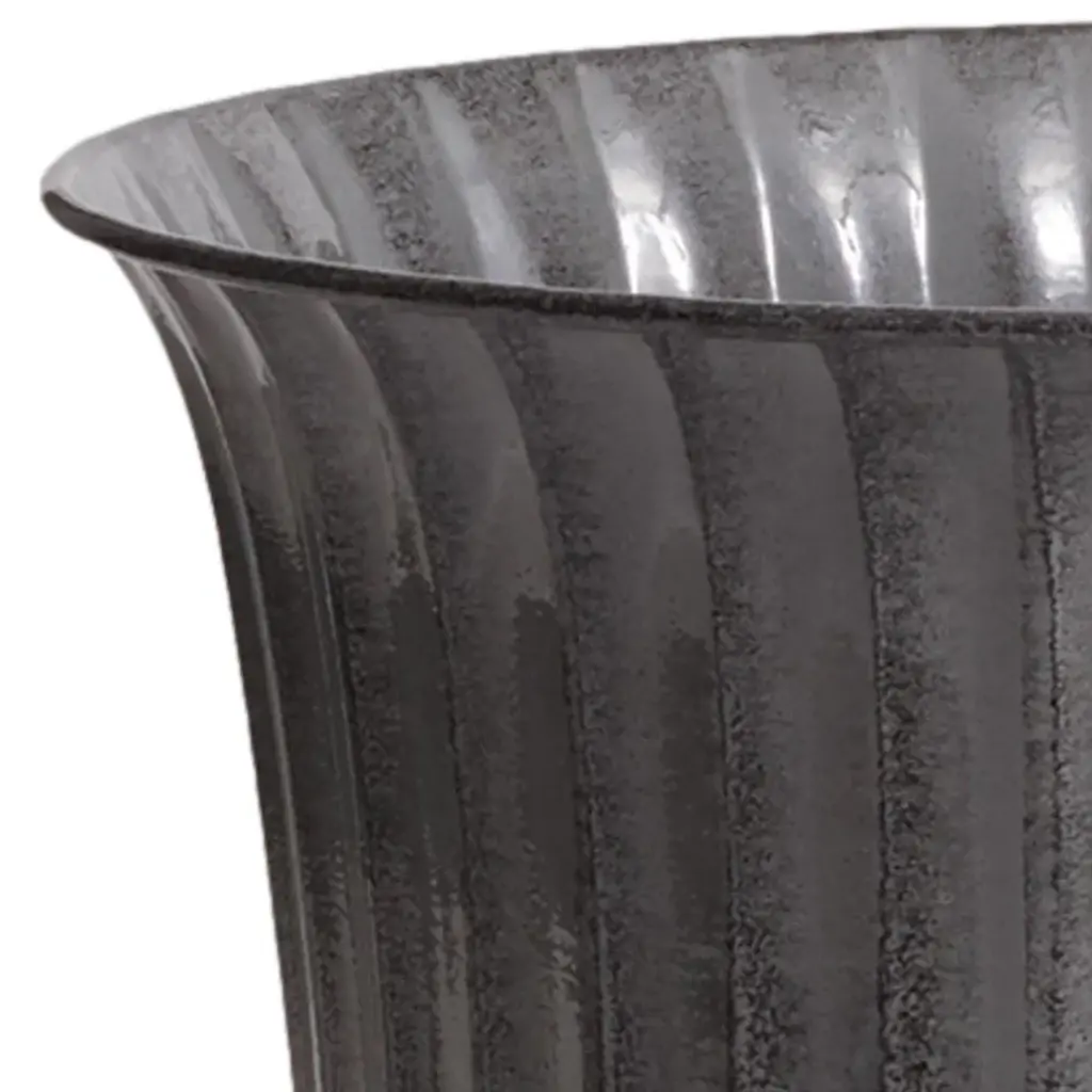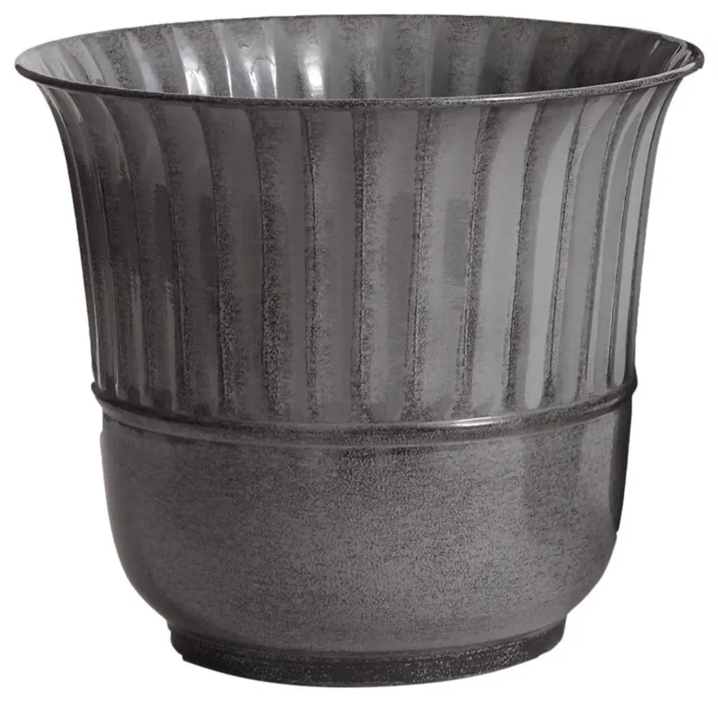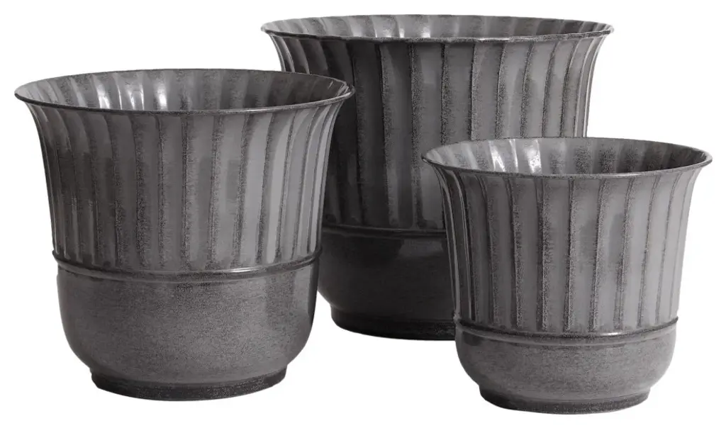 Classic Set Of 3 Ribbed Metal Planters Gray 14 In Elegant Outdoor Safe