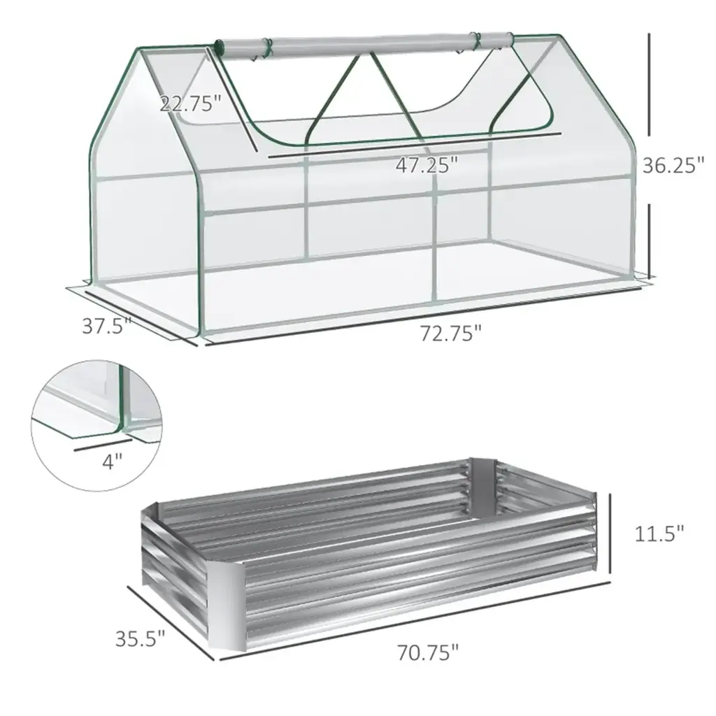 Specifications:Description:Enhance your gardening experience with a versatile vegetable planter and greenhouse combo designed to extend your growing season while safeguarding plants from the elements. Crafted from durable 0.5mm galvanized steel, the raised garden bed offers lasting performance and stability with its solid steel frame. The protective cover creates a greenhouse-like environment, allowing sunlight to nurture your plants while shielding them from harsh weather. Convenient roll-up zippered windows provide easy ventilation and moisture control, ensuring a thriving garden. Some assembly is required, making it an excellent choice for garden enthusiasts looking to maximize their space and plant protection.Key Features: