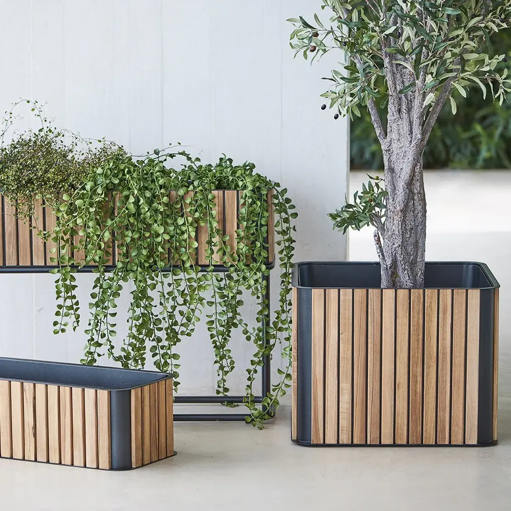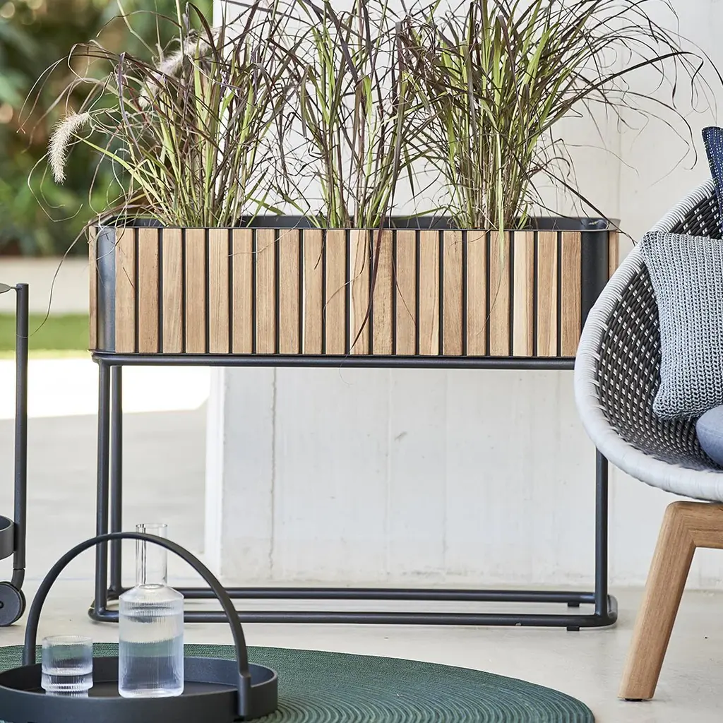 The Combine Planter is a modern planter in an exiting design and mix of materials. The warm certified teak and the streamlined powdercoated aluminium give a unique look that fits in in most spaces. Cane-line teak is approved and cultivated according to SVLK certification system. Plant your favourite herbs, flowers or trees and add the green spot to your outdoor place. The powder-coated aluminium ensure a resistant surface to knocks and scratches.