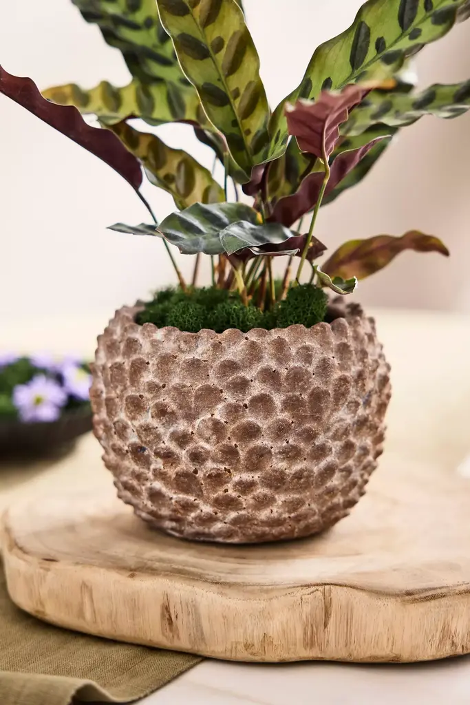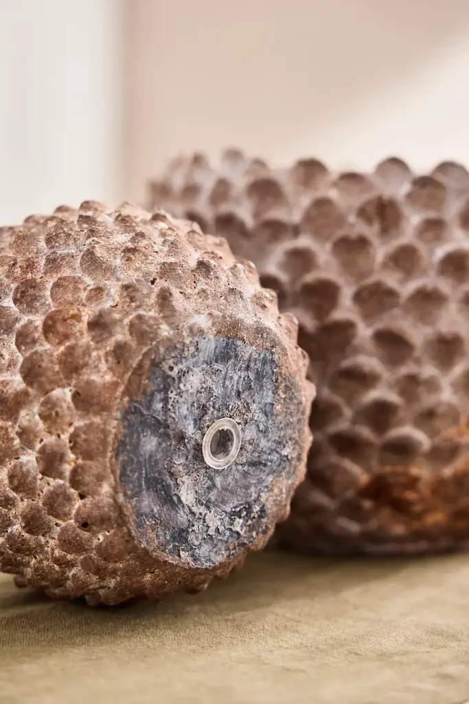 Cast from concrete, this petite pot draws inspiration from the textures of a fir forest.