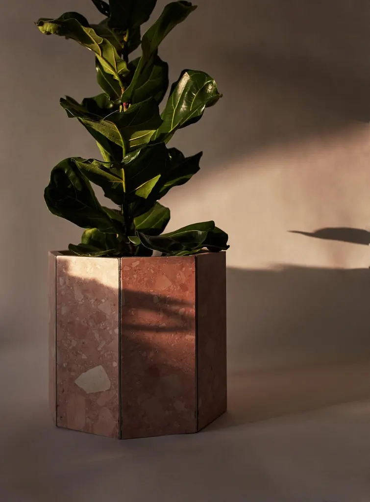 Contemporary Octagon Narcissus Planter / Pot In Pink Rosa Perlino Terrazzo