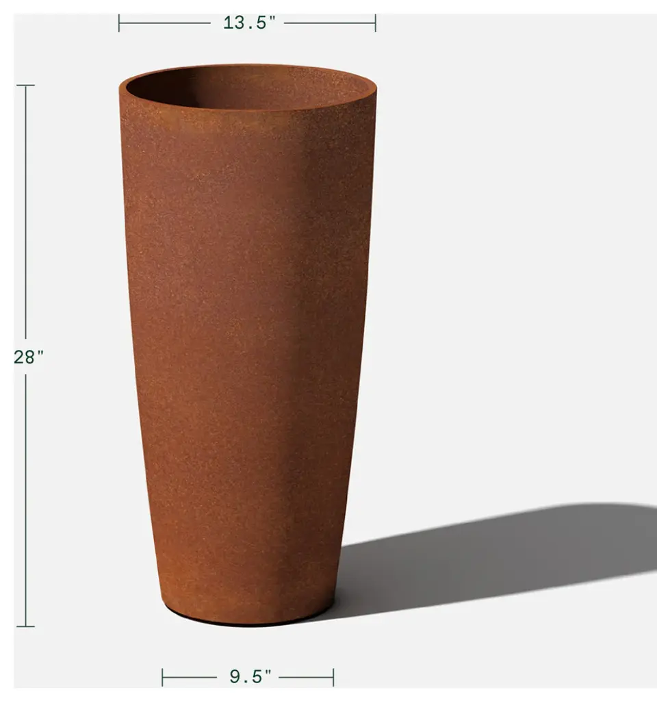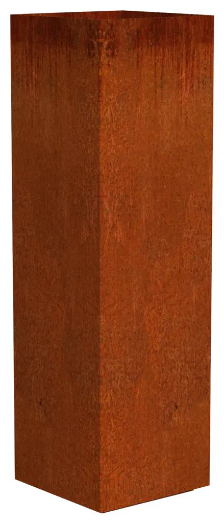 Crafted from the finest 16 gauge American Steel, our Column Planter will be the perfect addition to any outdoor decor. Corten Steel is also known as weathering steel. All of MK Designs'' Corten planters ship in their raw state and the patina (or rusting) process will occur when water is introduced to the material. The surface of the planter will develop an ever-changing and unique patina where a dense layer of iron oxide essentially penetrates the steel and slows the corrosion process, effectively acting as a protective barrier. Weathering steel has a reactive period from 3 to 9 months, depending on location and climate. Created for outdoor use, all of our planters are frost and heat-resistant, and they all contain drainage holes. Our planters come fully assembled and are covered by a five-year structural warranty.Please note that weathering steel products may produce carbon run off or staining to adjacent materials, like stone or concrete. The stone and concrete can be cleaned with a carbon pacifier to remove any residual run off. After the initial reactive period, weathering steel will cure and self-seal with very little to no carbon run off.