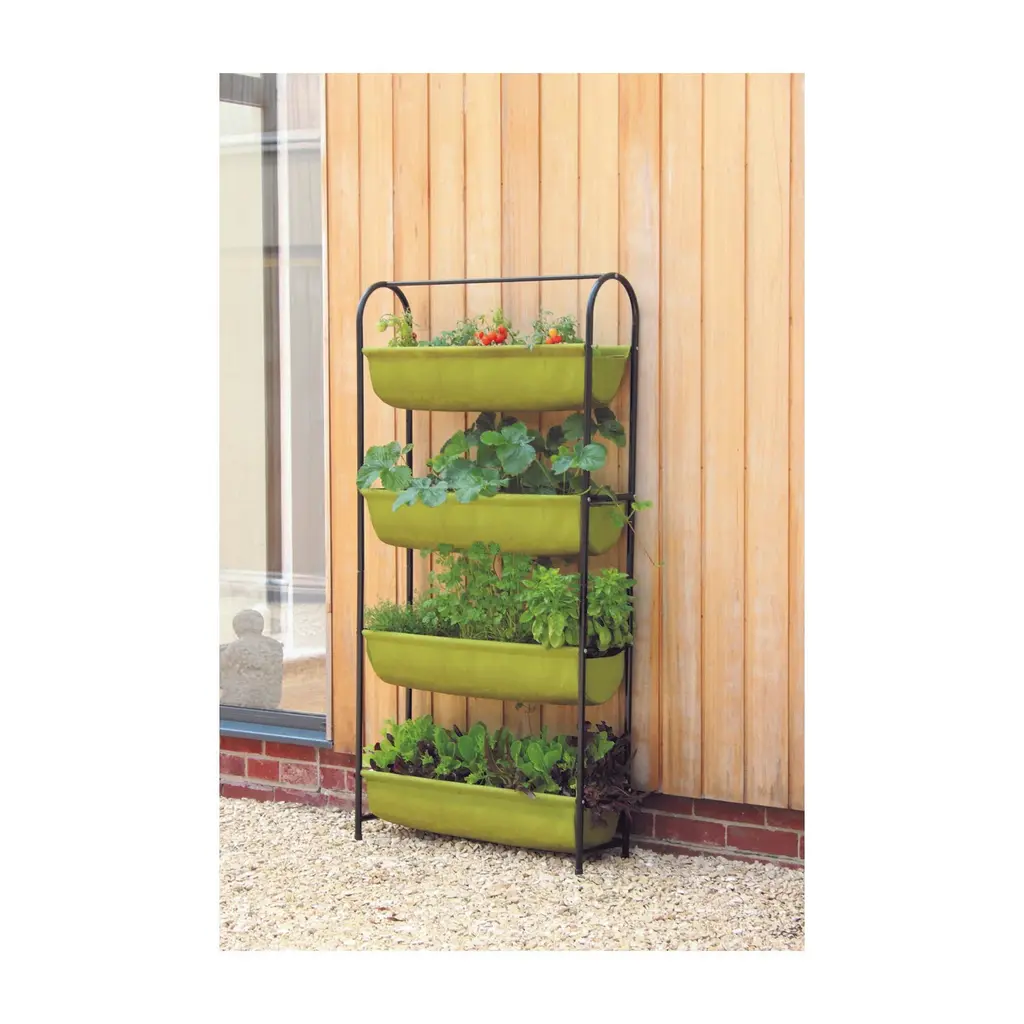Create a clean and tidy garden with our 4-tier vertical planter box! Whether you want to add a touch of green to your yard or grow your own healthy plants. Our vertical raised garden bed is ideal for you. Its 4-level design makes the plants independent of each other, so you can grow a variety of different plants. In addition, all four planter boxes are easy to remove, allowing you to replant your plants. What's more, the garden bed has a good drainage system, and both the stepped design and drainage holes will facilitate the removal of excess water. And the planter has a stable triangular structure at the bottom, which effectively lowers the center and avoids toppling. At the same time, the sturdy and safe PP material is specially designed to withstand the test of outdoor weather. Besides, the assembly and maintenance of the freestanding elevated garden bed is simple. So whether it's in your backyard, garden or bedroom, our vertical garden bed will stay with you for a long time.Features4 spacious planter boxes is sufficient for a variety of plants Drainage holes prevent water accumulations to promote plants grow Robust heavy metal frame ensures extraordinary stability Selected PP material is waterproof, lightweight and safe Detachable planter boxes enable you to replant the plants easily Vertical design is space-saving and good for plants to receive lights Concise design fits for your yard, patio, balcony, garden, etc Low maintenance is required to maintain the cleaning Easy to set up with easy to follow instruction and complete partsColor: Black+ Brown Material: Metal, PE Overall Size: 30'' x 28'' x 63''(L x W x H) Single Box Size: 27'' x 9.5'' x 7.5'' (L x W x H) Each Box Max Weight: 55 lbs Net Weight: 19 lbs Package includes: 1 x Vertical Garden Raised Bed 1 x Instruction