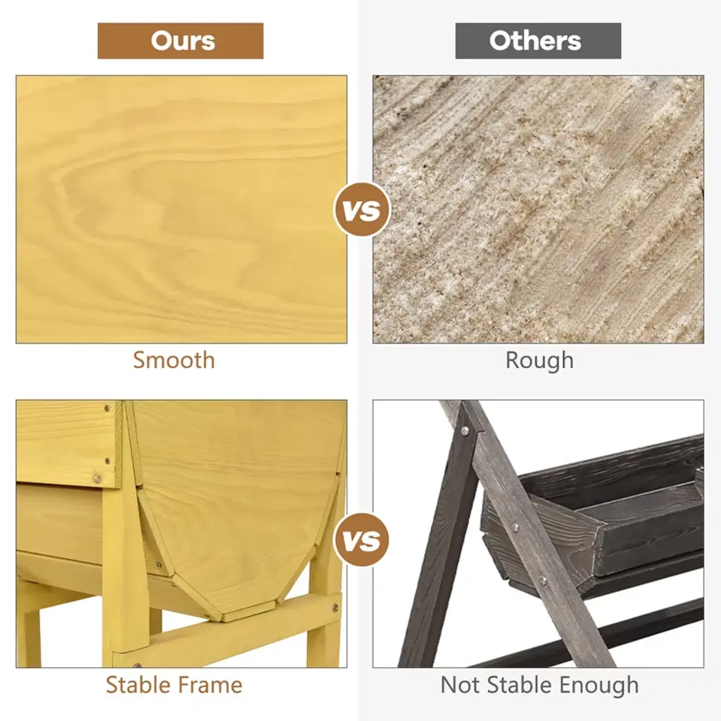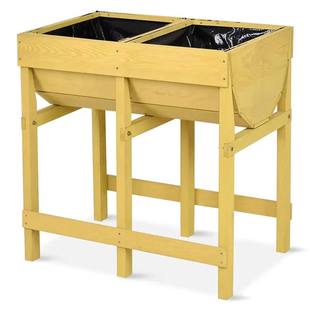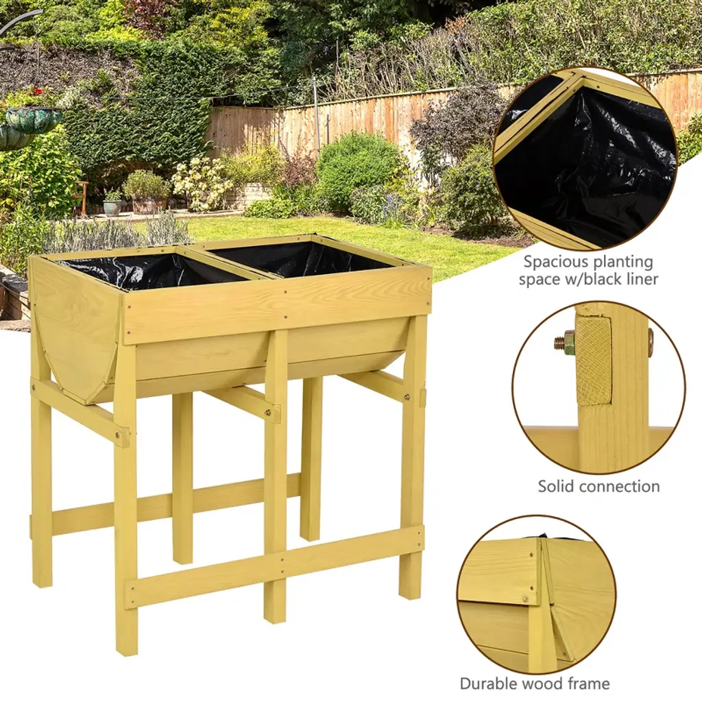 Costway Raised Wooden V Planter Elevated Vegetable Flower Bed Free Standing Planting With Liner