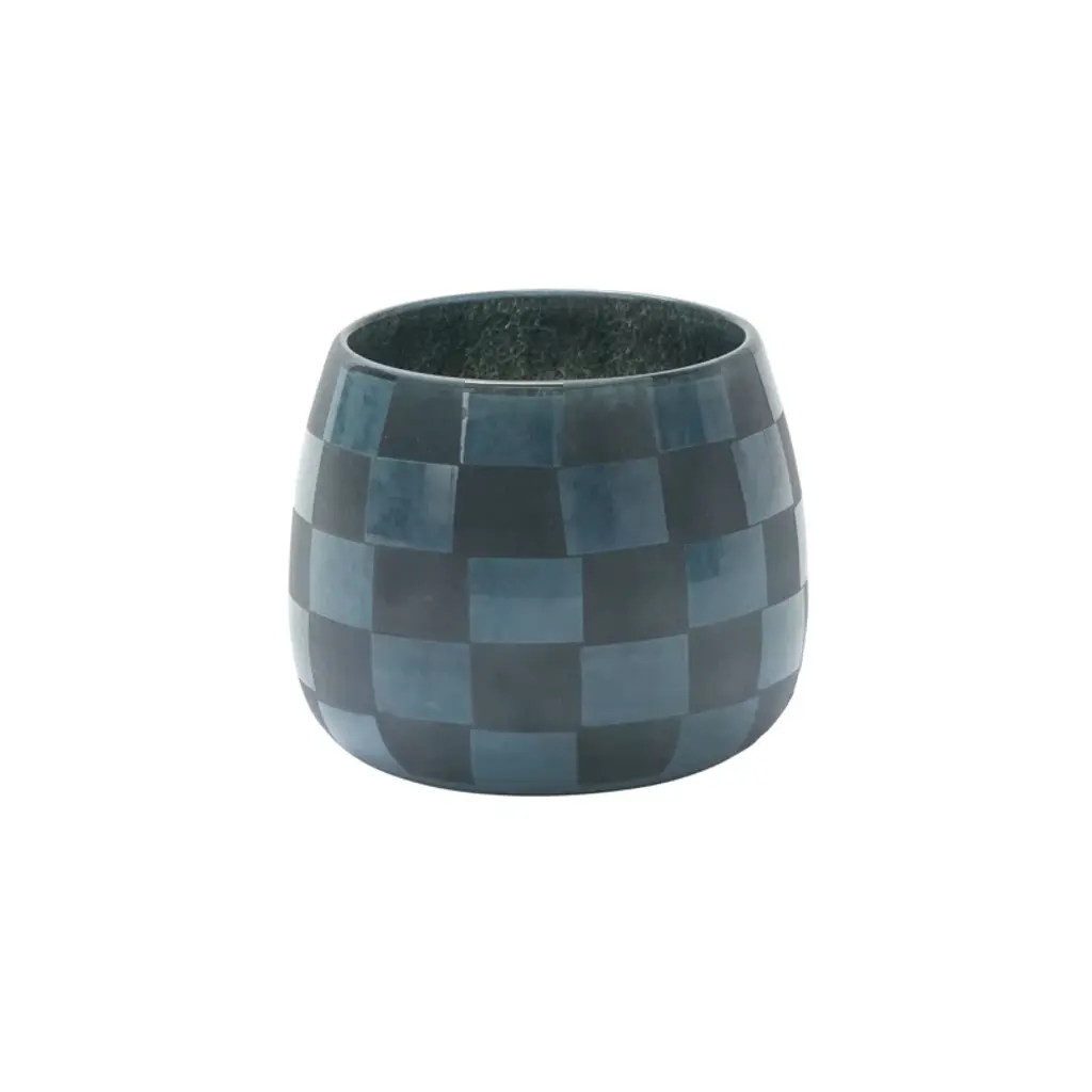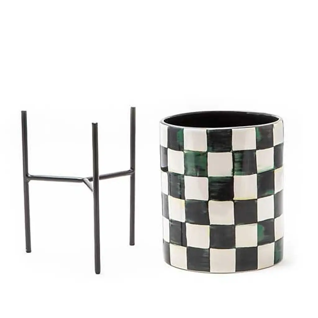 Display your plants or even a bottle of wine with MacKenzie-Childs style in our Courtly Check® Tabletop Planter. This ceramic planter, decorated with our signature pattern, fits into the accompanying three-legged metal stand.