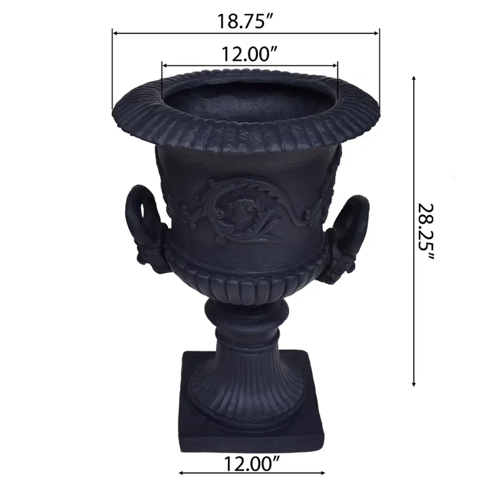 Cowlown Black Elegant Roman-style Lightweight Concrete Planter With Drainage Hole, Faux-stone Finish, Square Base For Indoor, Outdoor
