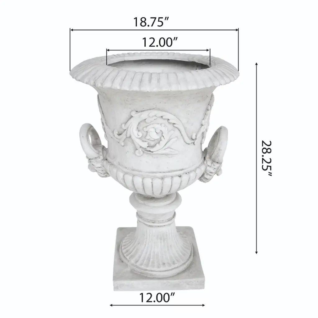 Cowlown White Elegant Roman-style Lightweight Concrete Planter With Drainage Hole, Faux-stone Finish, Square Base For Indoor, Outdoor