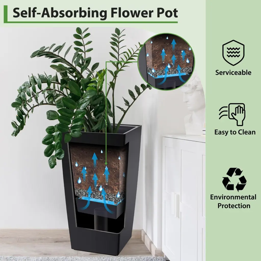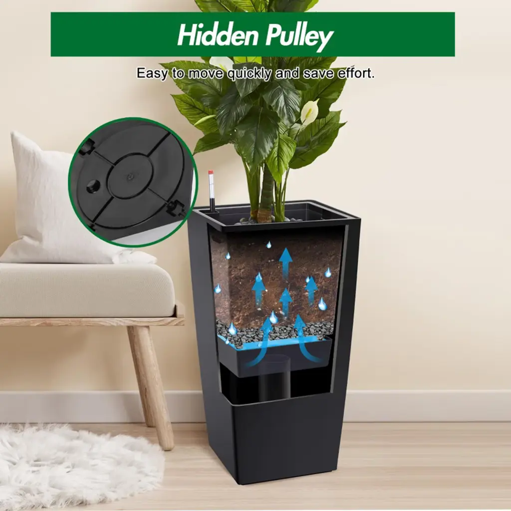 The COZONY 30" Tall Rectangular Planters offer a stylish and functional solution for your indoor or outdoor gardening needs. This set of two large modern plant pots features drainage holes, a water level monitor, and wheels for easy mobility. Perfect for patios, porches, living rooms, or home offices, these planters allow you to keep your plants healthy with proper drainage and easy watering control. Designed for both beauty and practicality, they are an excellent choice for bringing greenery into any space.