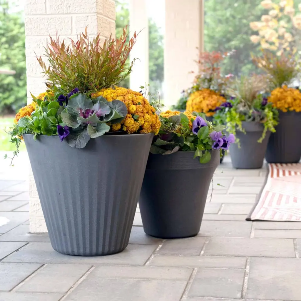 Crescent Garden Fold Eco-friendly Plastic Round Planter Pot Gray 15"x14"