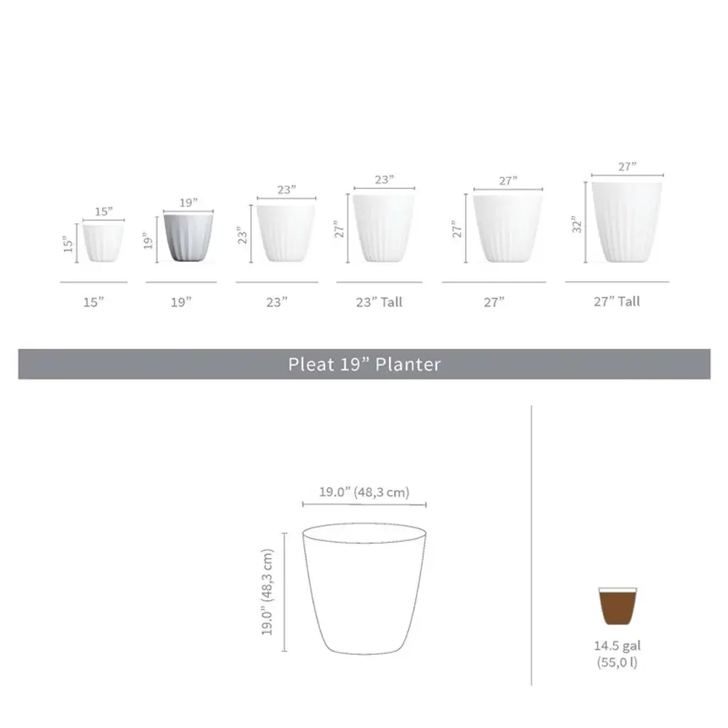 Bring a touch of modern elegance to your greenery with the Pleat Modern Planter. Featuring a timeless pleated design, this planter creates a striking rhythm that enhances both contemporary and traditional spaces. Its versatile look makes it the perfect backdrop for houseplants like fiddle leaf figs, birds of paradise, or even faux plants when you want lasting greenery with no upkeep.Crafted for flexibility, the Pleat Planter comes in a range of sizes and colors, allowing you to create dramatic clusters, clean rows, or a single bold statement piece. These are great for deep-rooted plants while maintaining a small footprint—perfect for both residential and commercial settings. Whether indoors or outdoors, the Pleat Planter transforms your space into a polished, stylish haven.
