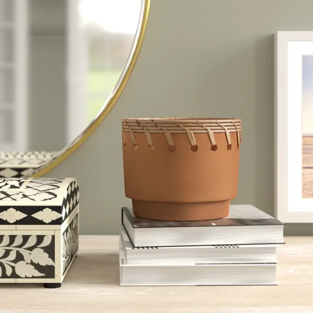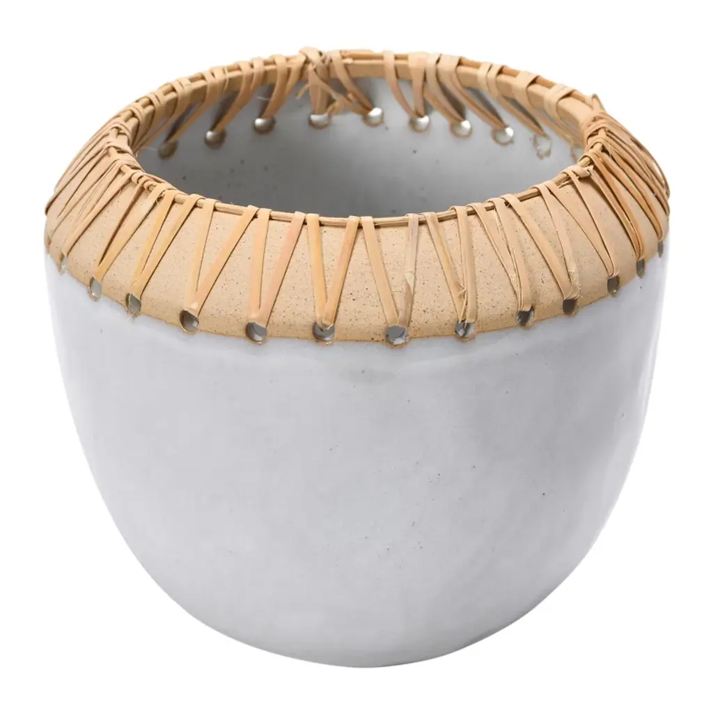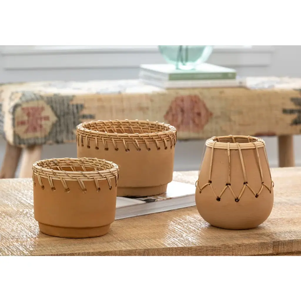 Our combines traditional fired terra cotta pottery with the unique texture and detail of hand-woven bamboo. Giving a modern twist to archaeological material, this collection is the perfect balance of old and new, simple yet interesting. Because of this, they will fit into many different design styles, from boho to ultra-modern.