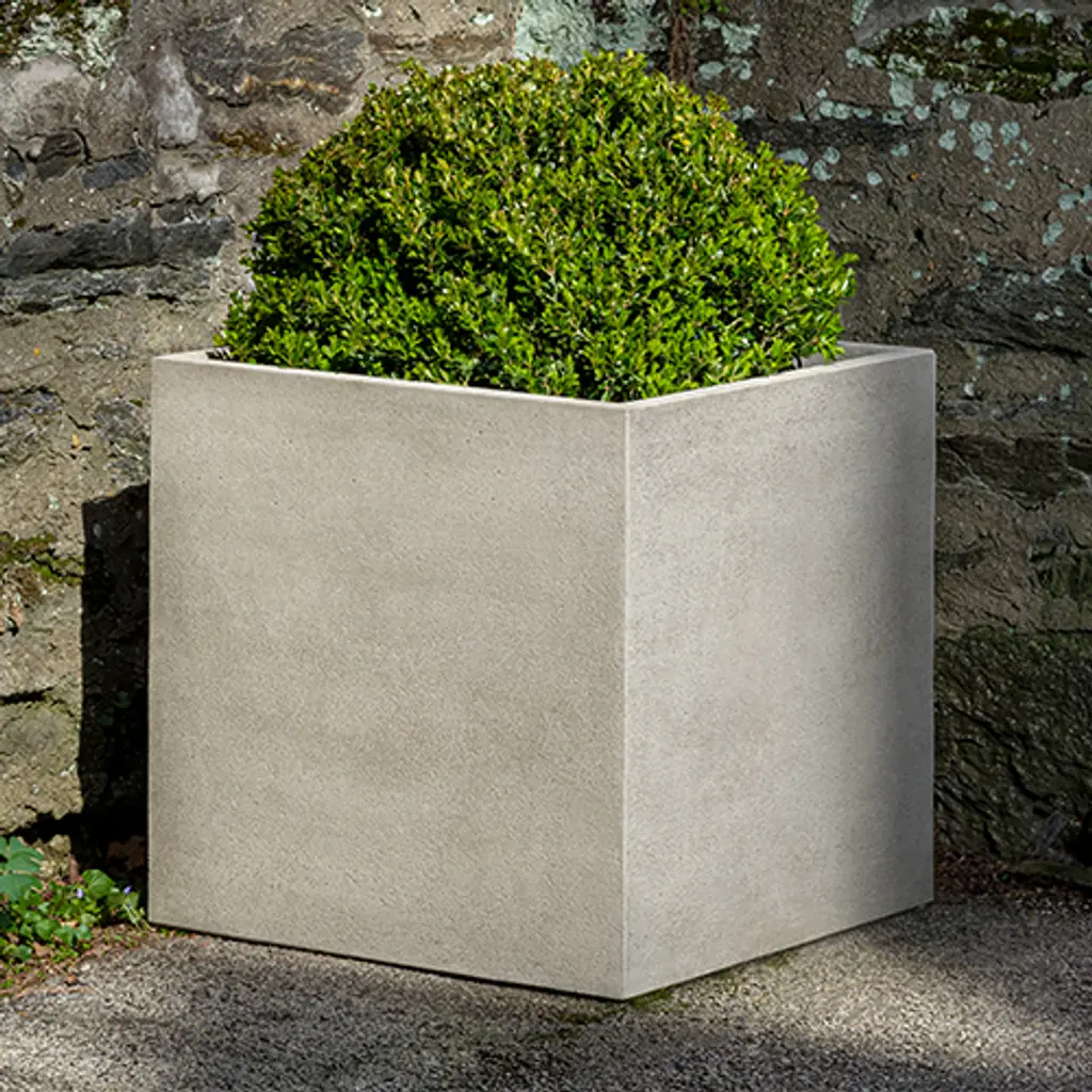 Designed with durability in mind, this cast-stone planter was made in the USA using locally sourced natural materials. Its hand-applied patina replicates the look of naturally aged materials, adding gravitas to its minimalist silhouette. The planter includes a drainage hole in the bottom.