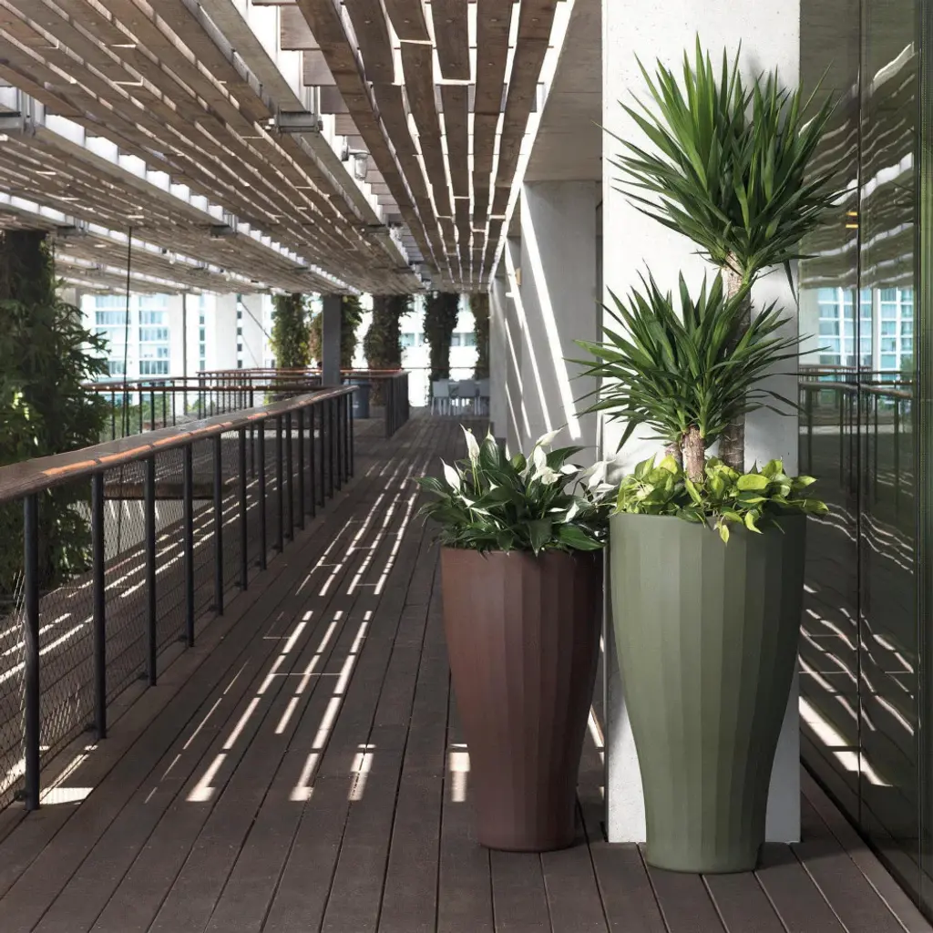 Simple and sleek, the Cup Planter from Crescent Garden makes a lovely addition to your indoor or outdoor gardening area. The double-wall planter helps insulate the roots of your plants when the temperature shifts from cold to hot, preserving the longevity of the plant''s life. Created for the first-time gardener or the savvy enthusiast, the TruDrop system feature allows your plants to better survive the outdoors and can go weeks without watering for phenomenal results. The ingeniously designed reservoir in the planter, which reduces watering frequency and avoids over-fertilizing, is an innovative environmental solution for container gardening. This 100% recyclable and food-safe container is resistant to chipping, fading and mildews, resulting in healthier plants and more efficient gardening. The Crescent Garden�s TruDrop One self-watering planting pots are available in a great variety of colors, sizes and styles. Using quality materials that are backed by a 10-year warranty, these lightweight planters are known for their durability, designed to withstand extreme weather, and made to last. SELF-WATERING: Go weeks without watering and the easy-to-read water-level indicator lets you know the right time to fill the reservoir. This ingeniously designed reservoir also keeps fertilizer contained. UNIQUE DRAINAGE: This indoor / outdoor planter includes a pre-drilled drainage hole for healthier plant growth. When using the plant pot outdoors, remove the red waterproof plug. A hidden overfill tube drains out excess rainwater, ensuring the plants� longevity. Matching saucers sold separately. LIGHTWEIGHT AND STURDY: Constructed with 100% recyclable rotation molded polyethylene, making it lightweight, chip-resistant and durable. WEATHER RESISTANT: The weather-proof planter structure ensures the planter won''t fade or crack during extreme temperatures. WARRANTY: 10-year limited warranty FOOD-SAFE: Constructed with eco-friendly material to grow your favorite herbs and edibles. Inner dimension: 21.65"W x 39.37"H / Holds 19.15 gal soil + 8.32 gal water