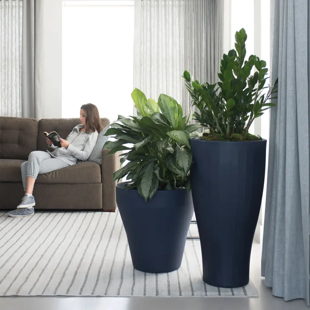 Simple and sleek, the Cup Planter from Crescent Garden makes a lovely addition to your indoor or outdoor gardening area. The double-wall planter helps insulate the roots of your plants when the temperature shifts from cold to hot, preserving the longevity of the plant''s life. Created for the first-time gardener or the savvy enthusiast, the TruDrop system feature allows your plants to better survive the outdoors and can go weeks without watering for phenomenal results. The ingeniously designed reservoir in the planter, which reduces watering frequency and avoids over-fertilizing, is an innovative environmental solution for container gardening. This 100% recyclable and food-safe container is resistant to chipping, fading and mildews, resulting in healthier plants and more efficient gardening. The Crescent Garden''s TruDrop One self-watering planting pots are available in a great variety of colors, sizes and styles. Using quality materials that are backed by a 10-year warranty, these lightweight planters are known for their durability, designed to withstand extreme weather, and made to last. SELF-WATERING: Go weeks without watering and the easy-to-read water-level indicator lets you know the right time to fill the reservoir. This ingeniously designed reservoir also keeps fertilizer contained. UNIQUE DRAINAGE: This indoor / outdoor planter includes a pre-drilled drainage hole for healthier plant growth. When using the plant pot outdoors, remove the red waterproof plug. A hidden overfill tube drains out excess rainwater, ensuring the plants'' longevity. Matching saucers sold separately. LIGHTWEIGHT AND STURDY: Constructed with 100% recyclable rotation molded polyethylene, making it lightweight, chip-resistant and durable.WEATHER RESISTANT: The weather-proof planter structure ensures the planter won''t fade or crack during extreme temperatures. WARRANTY: 10-year limited warranty FOOD-SAFE: Constructed with eco-friendly material to grow your favorite herbs and edibles. Inner dimension: 15.75"W x 29.53"H / Holds 6.16 gal soil + 3.17 gal water