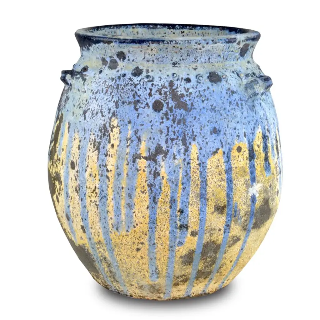 Currey & Company Cinisi Small Antique Blue Drip Planter