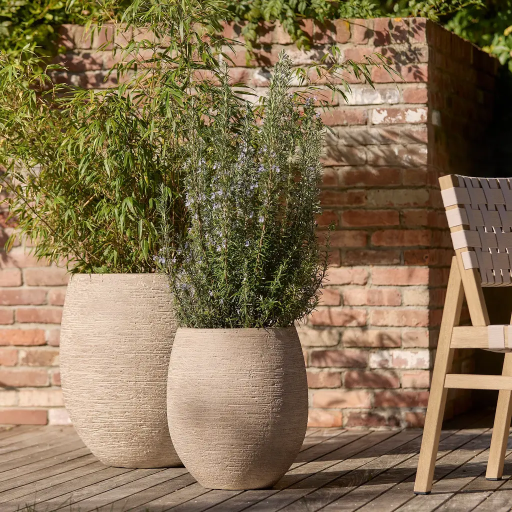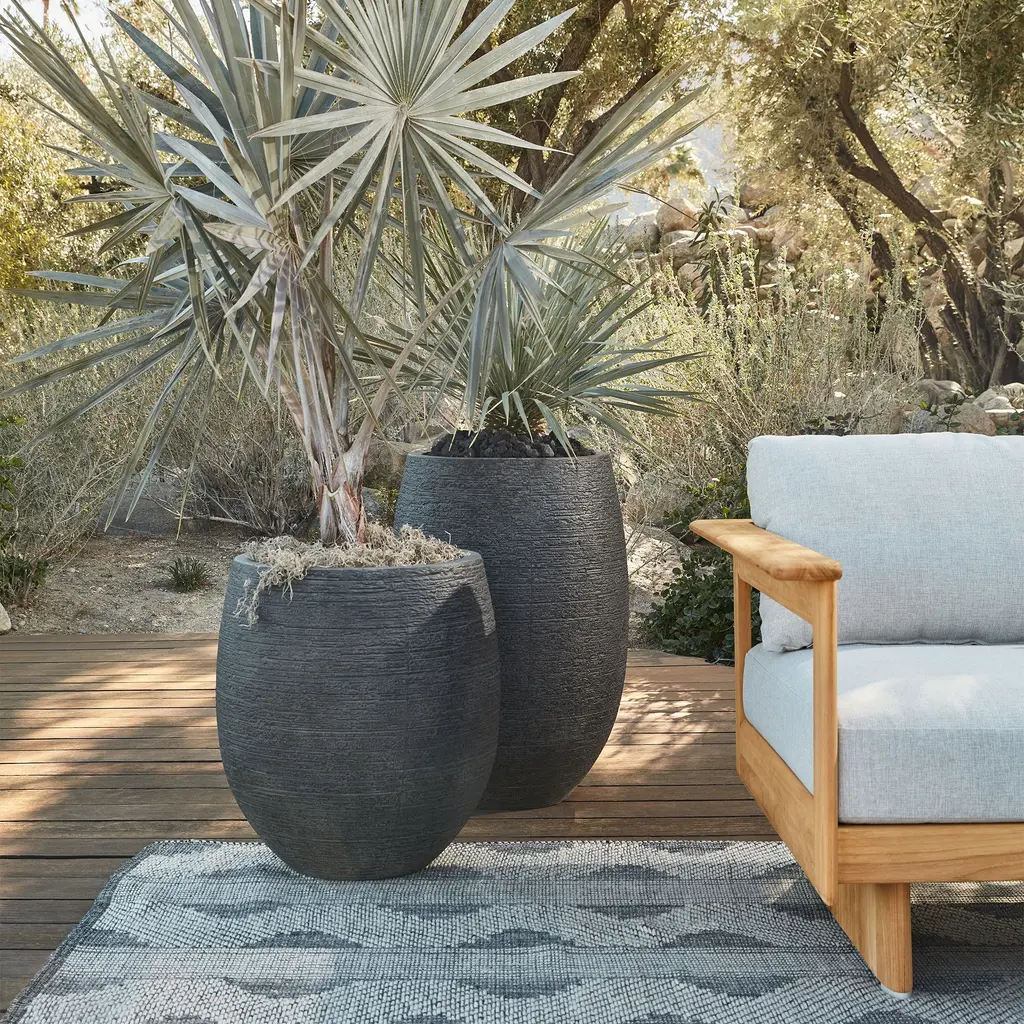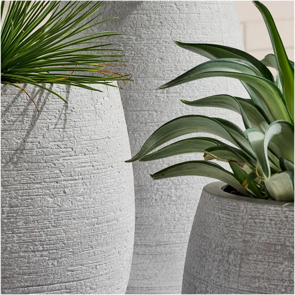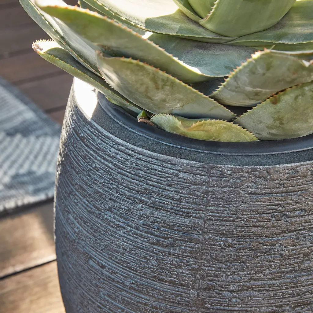 Drainage holes help protect sensitive roots. Frost-proof material can be used outdoors. Made from an easy-to-move lightweight composite.