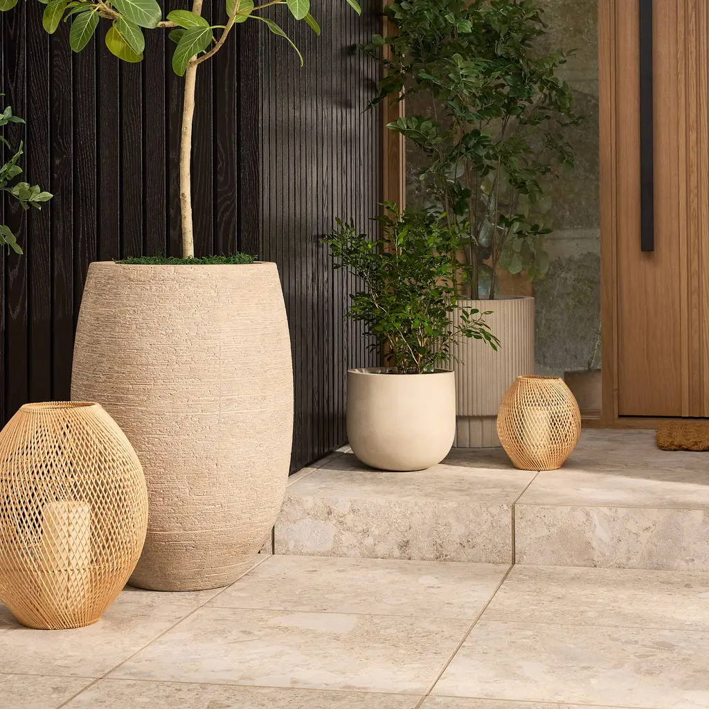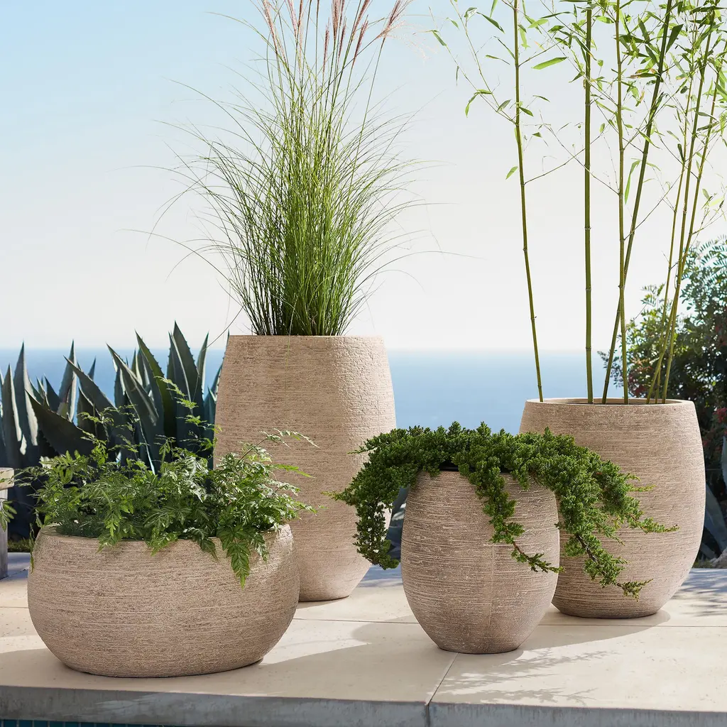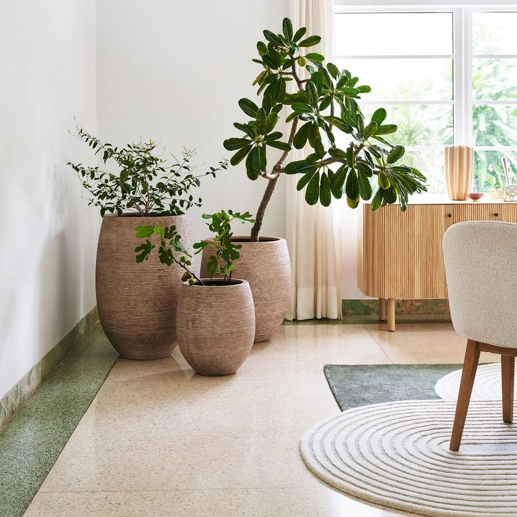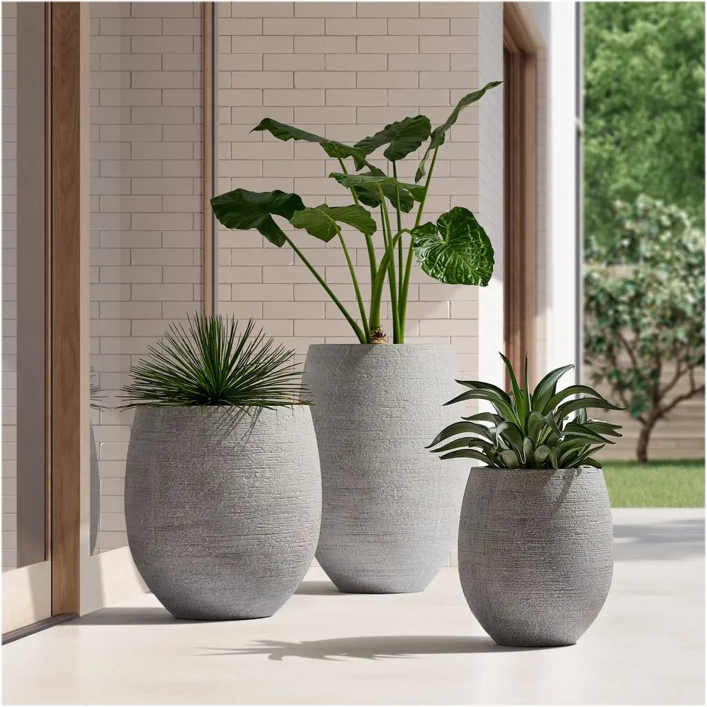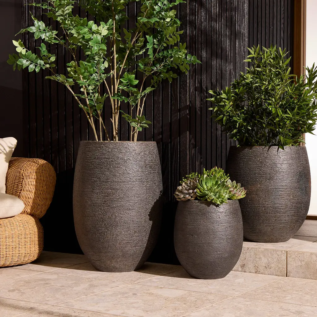 Drainage holes help protect sensitive roots. Frost-proof material can be used outdoors. Made from an easy-to-move lightweight composite.