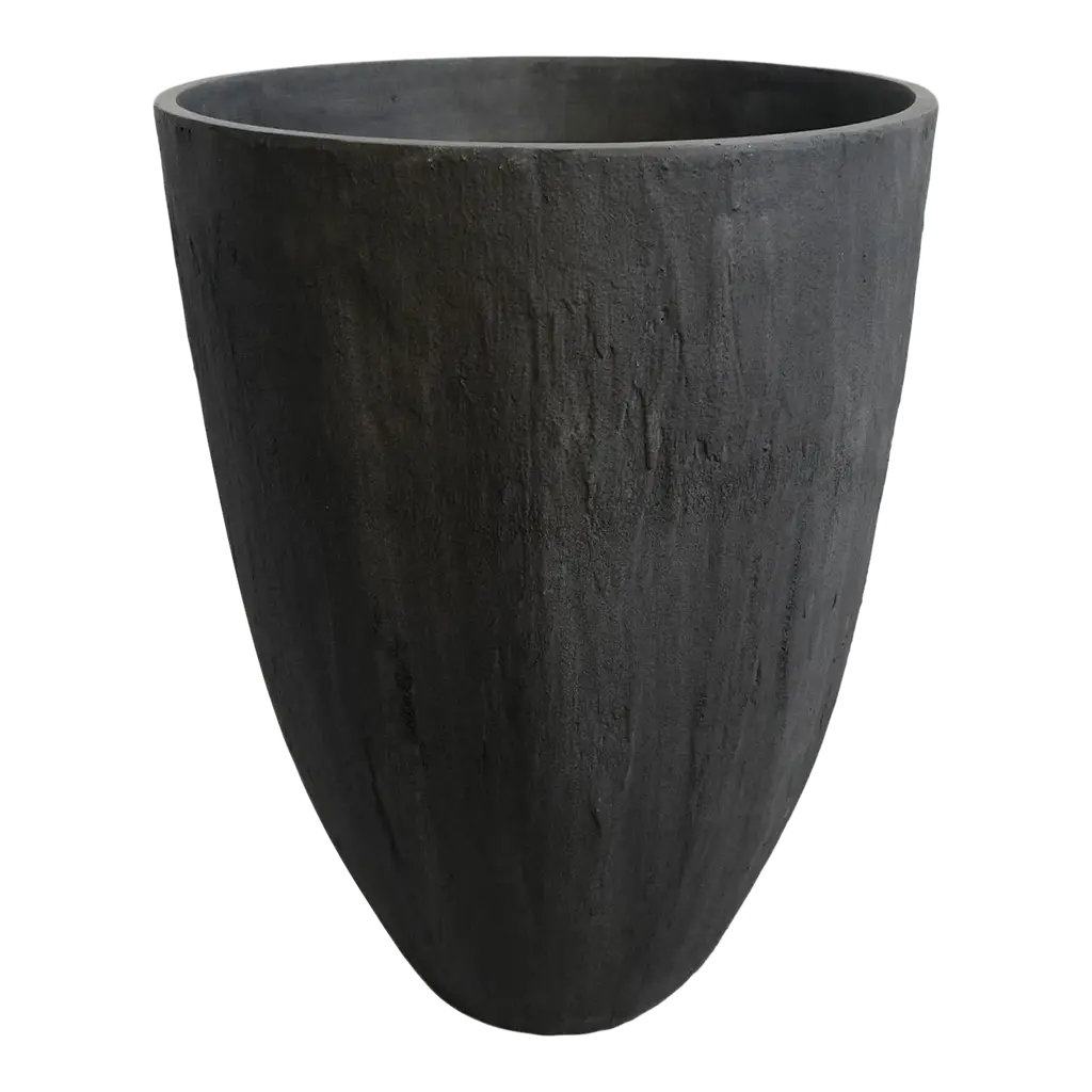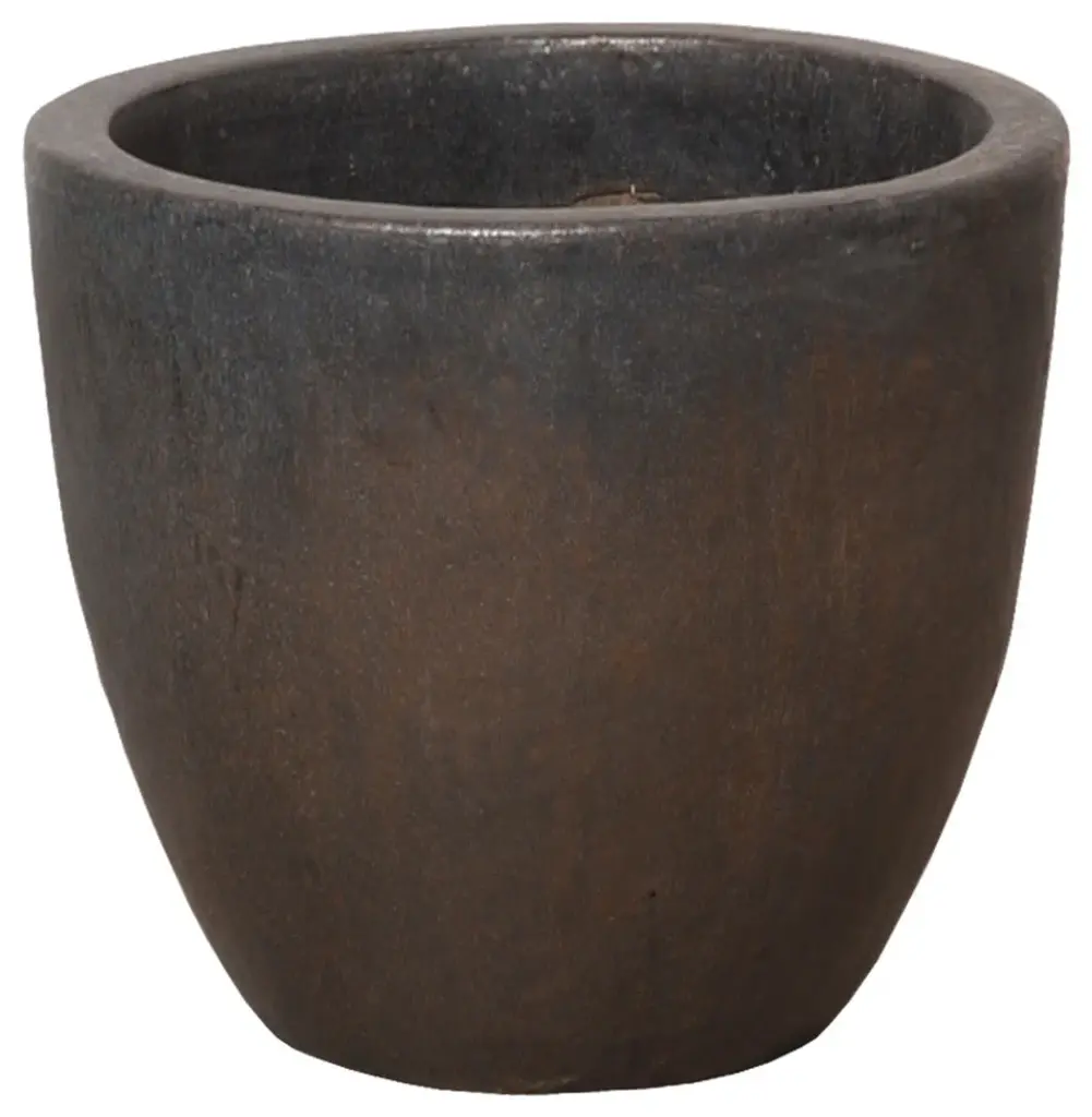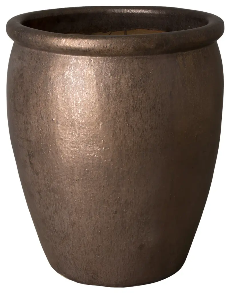Tall, strong planter with a metallic glaze. Has drainage hole.