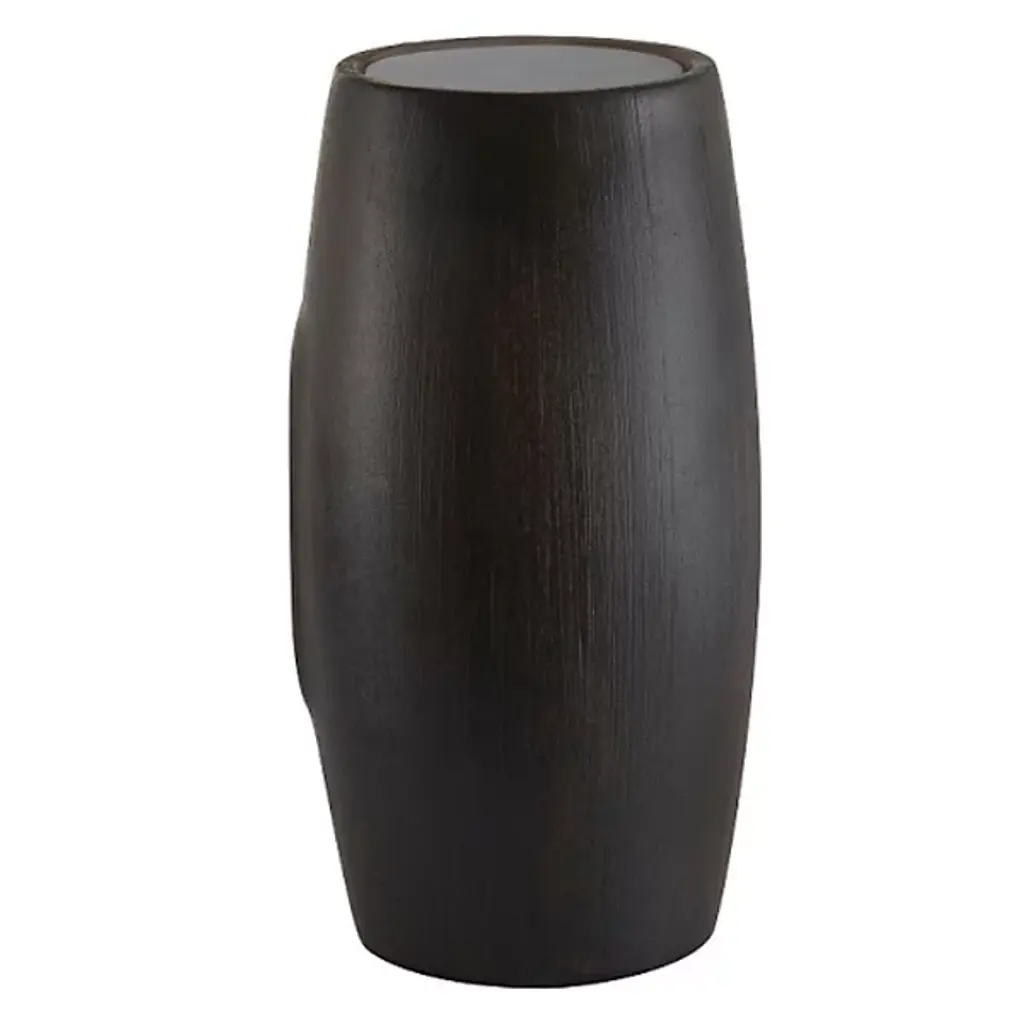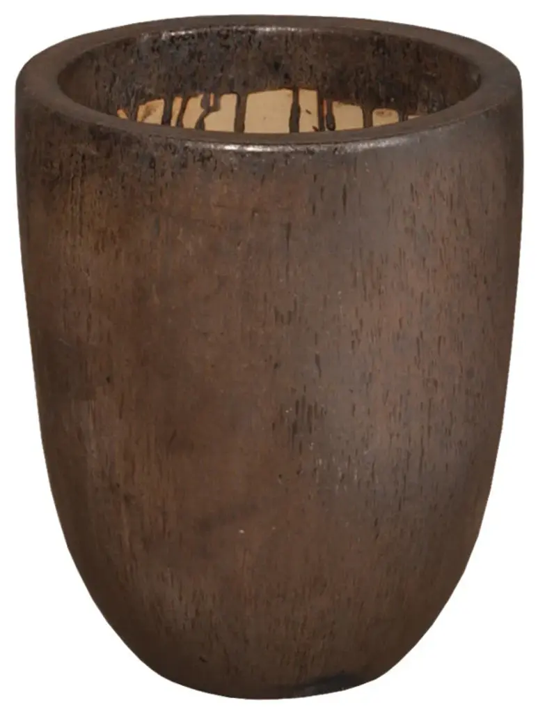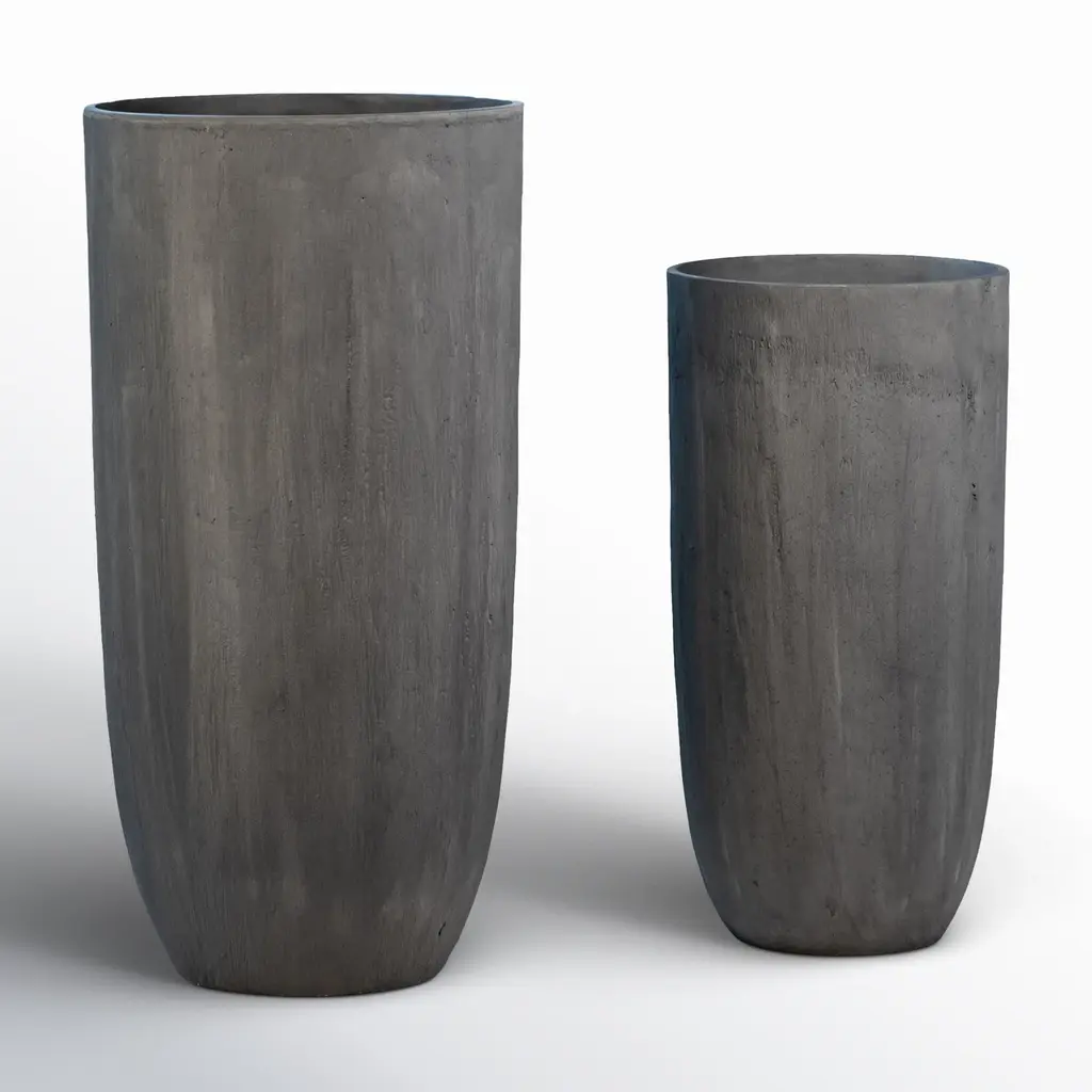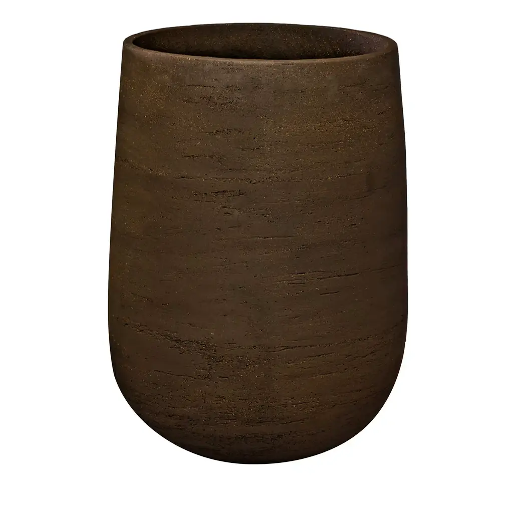 Tall, strong planter with a metallic glaze. Has drainage hole.
