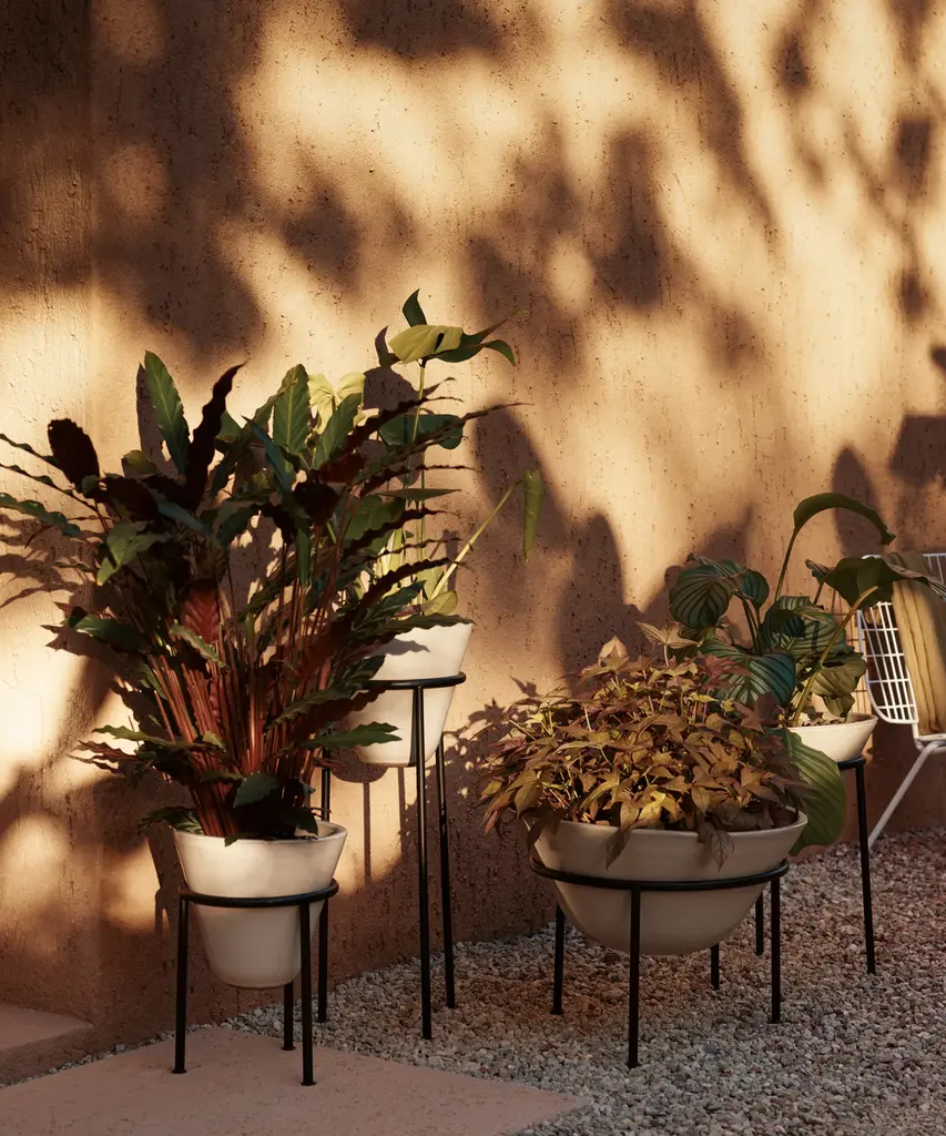 Centred around the belief that everyday objects should add to the ambience of a space, the Daiza Planter elevates both plants and rooms. Set on a powder-coated metal stand, the voluminous pot channels the familiar feel of ancient vessels. Shaped from earthenware, it is finished with a glossy, reactive glaze for understated colour and texture. Subtle differences in form, surface finish and firing temperature during the handcrafting process make each container entirely unique. Available in four different sizes of varying heights and made for indoor use, the Daiza Planter can be used outside when the corresponding care instructions are followed.
