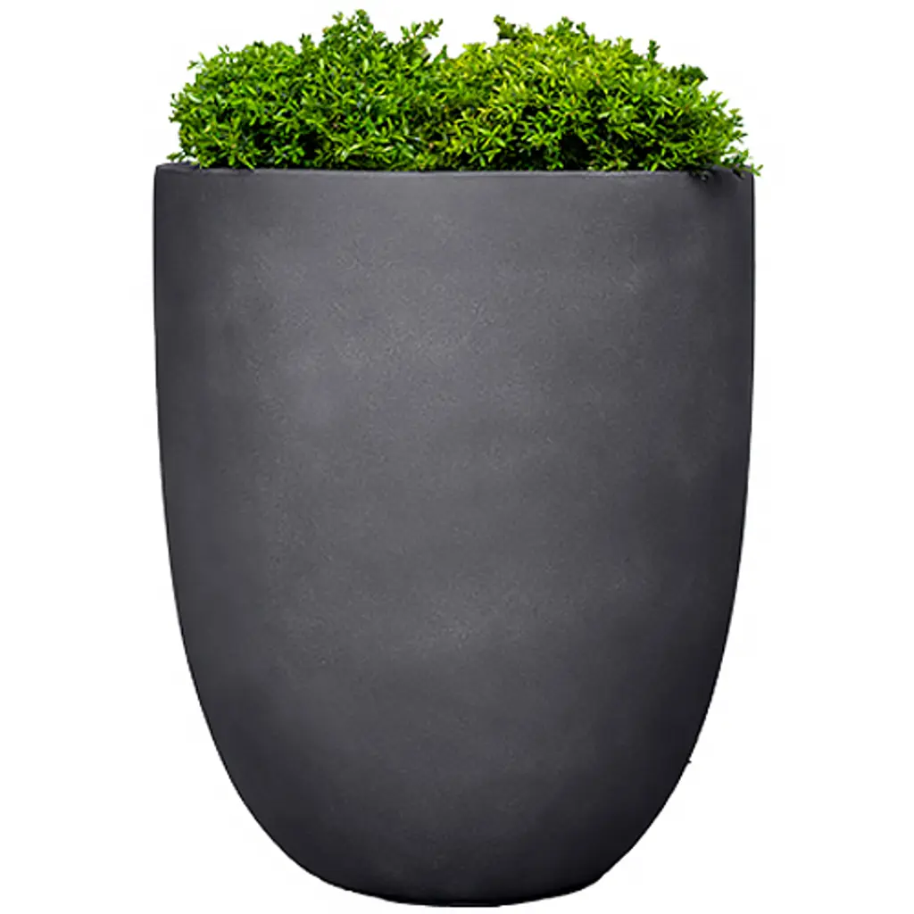 This planter is crafted of fiber clay with a simple silhouette and weathered rust finish.