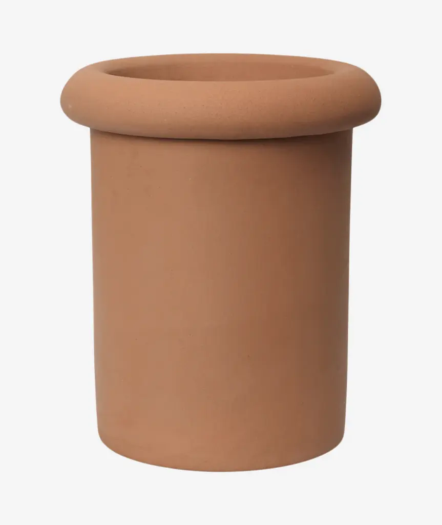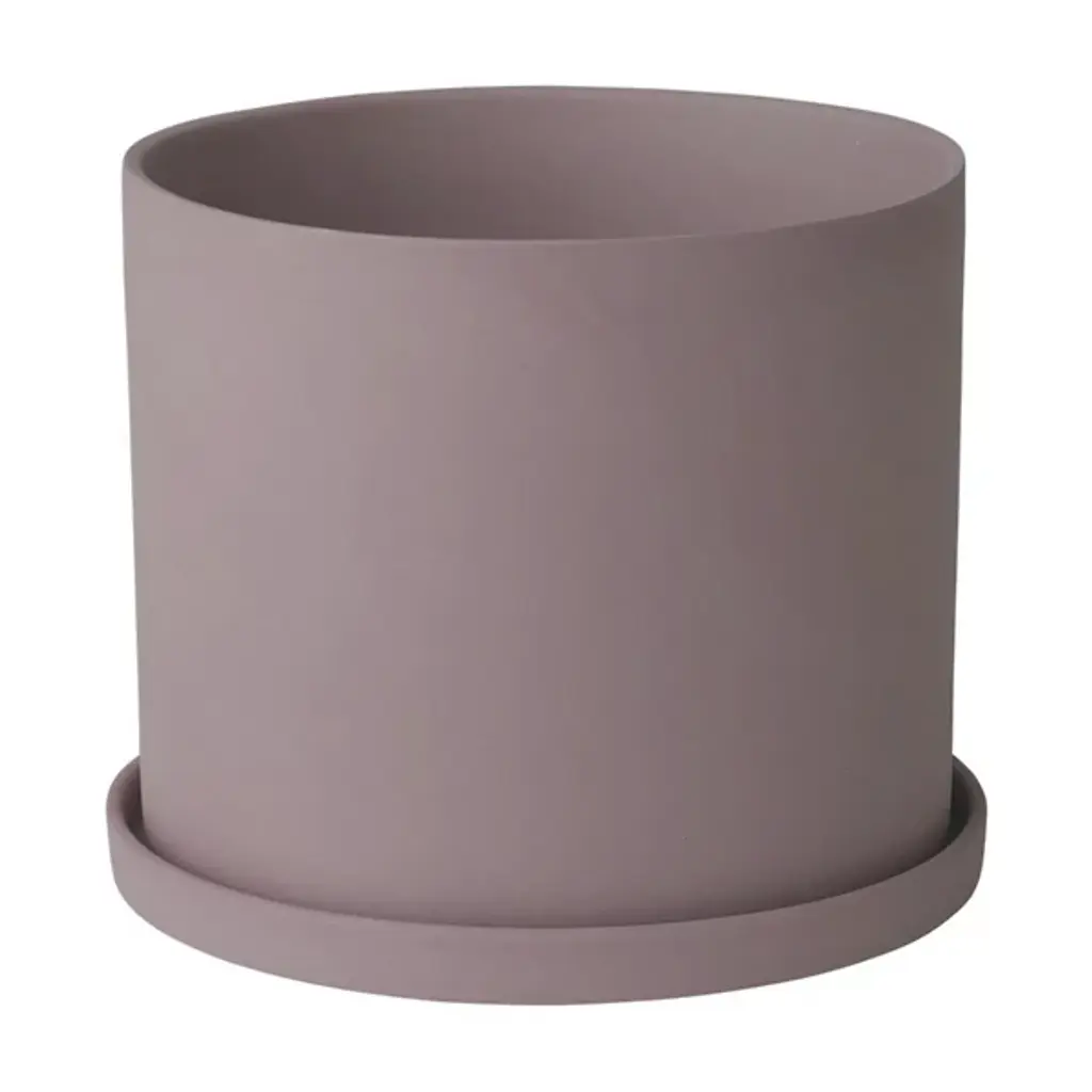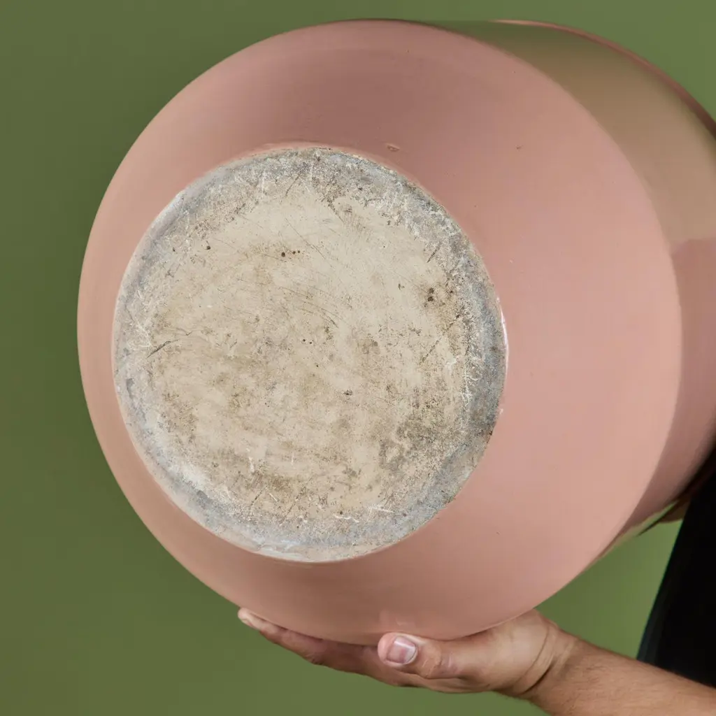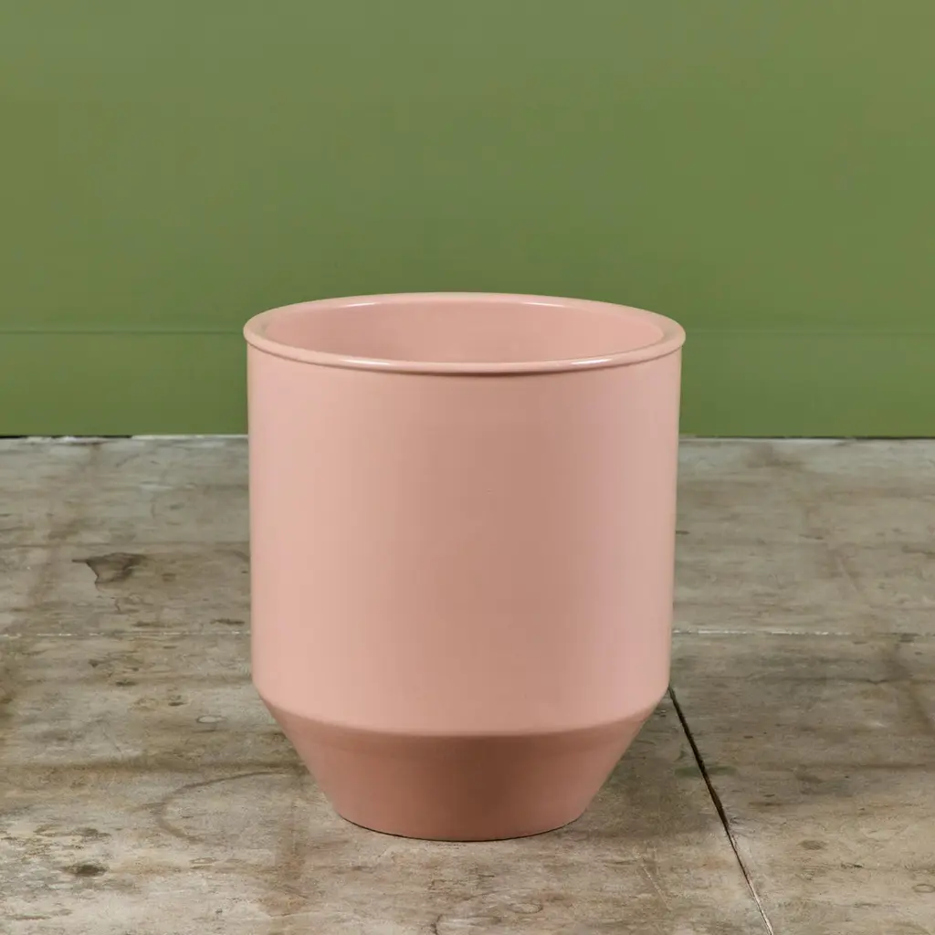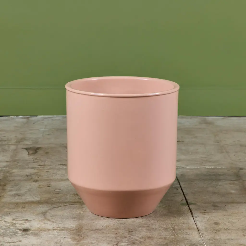 Bullet planter by David Cressey from the Pro/Artisan collection for Architectural Pottery. The planter is finished in a 'millennial pink' glaze. The top of the planter has slightly bowed sides and a flattened lip while the bottom tappers inwards. Two available. Priced individually.Dimensions15.25" diameter x 17.25" height.ConditionExcellent vintage condition.
