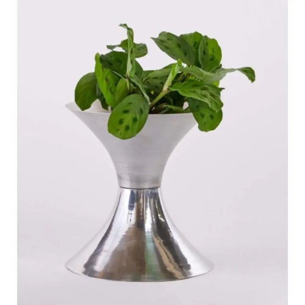 Dawn Planter, Gray by Laun ( Handmade in Los Angeles )Dawn CollectionDimensions: H.27 D.25 W.35 cmMaterials: Polished Or Powder Coated AluminumAlso Available: Dawb Planter White, custom sizing, and finishes upon request, please contact usTaking inspiration from the vivid symbolism in Octavia Butler’s science fiction novel Dawn, the Dawn Planter is designed in powder-coated or polished aluminum. LAUN is a Los Angeles-based design firm focused on enriching the built environment through architecture, furniture and creative collaborations.LAUN Studio prioritizes curiosity and exploration as the founding design tenants in architecture and interiors.LAUN was founded in 2018, when friends Rachel Bullock and Molly Purnell brought together their backgrounds in woodworking, metal working and architecture to build a practice of enduring spaces and products. The company’s objectline harnesses the unique talents of Los Angeles based manufacturers to Craft timeless, heirloom quality furniture suitable for both indoor and outdoor use.