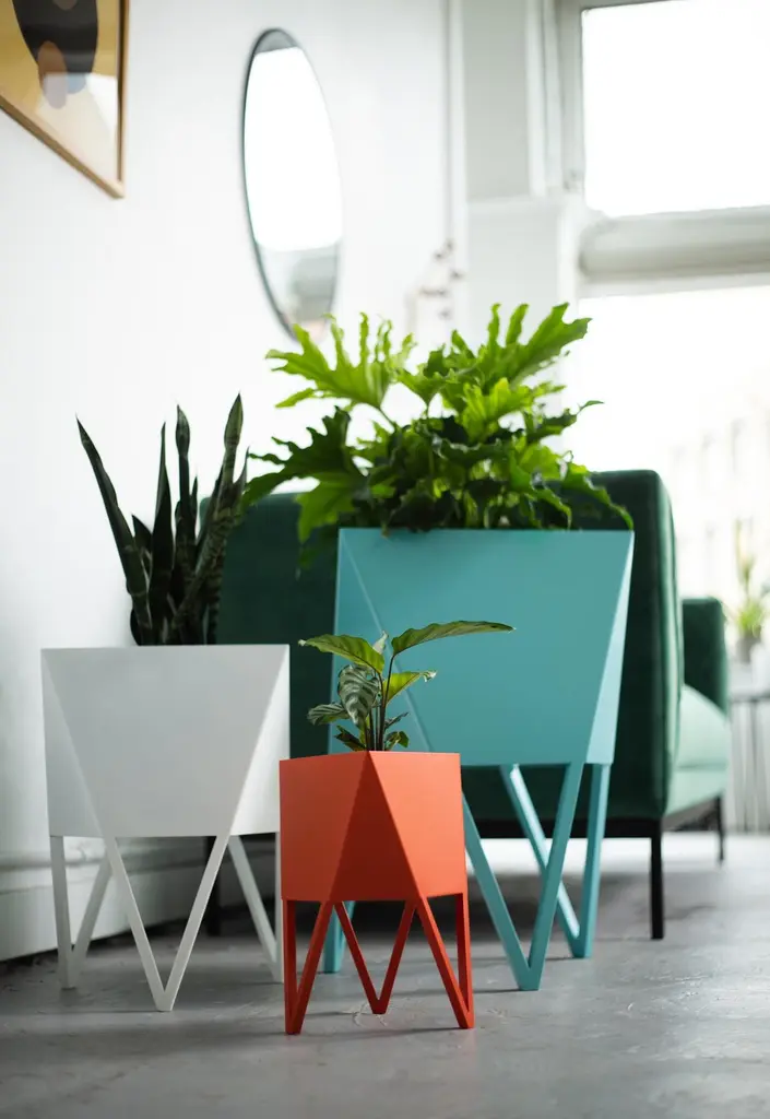 Force/Collide's award-winning signature planter is an ongoing production available in multiple colors and sizes. This original design is a nod to playful perspectives and spatial relationships. Proportions are thoughtful in aesthetic while optimizing function and user flexibility. The potting basin is built with extra volume for plants to grow, while integral legs serve as a built-in stand. The Deca Planter is an elevated home accent for plant lovers with refined craftsmanship and bold personality.The Deca Planter comes in a powder coated finish that offers bold color accents as well as protection against corrosion. Available in four sizes and five colors, optional drainage holes are integral to the design, (sealing plugs provided with purchase). Plants can be potted directly or easily exchanged if kept in nursery pots. We build all Deca Planters by hand in small quantity batches in the Force/Collide studio.Brass is a finely textured, patinated finish applied by hand. This finish is recommended to be used indoors only. Finishes may vary slighty between products. Please note, this coating may continue to patina over time.Force/Collide received a Carol Duke Artist Award of Excellence from Bellevue Arts Museum at Arts Fair in 2018 and again in 2021 for the Deca Planters. They have been selected for exhibits at American Design Club for NY Design Week, 1stdibs Gallery and WorkOf.