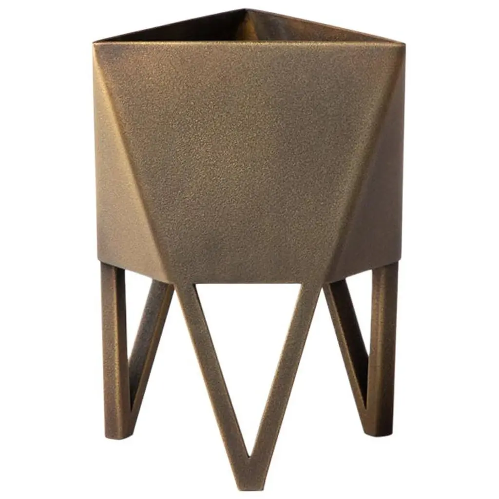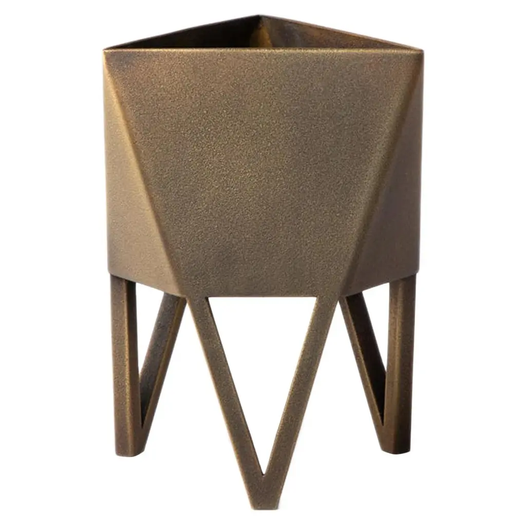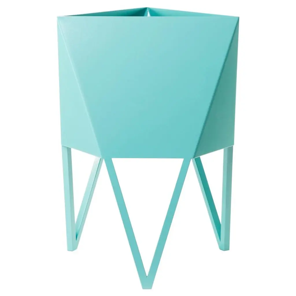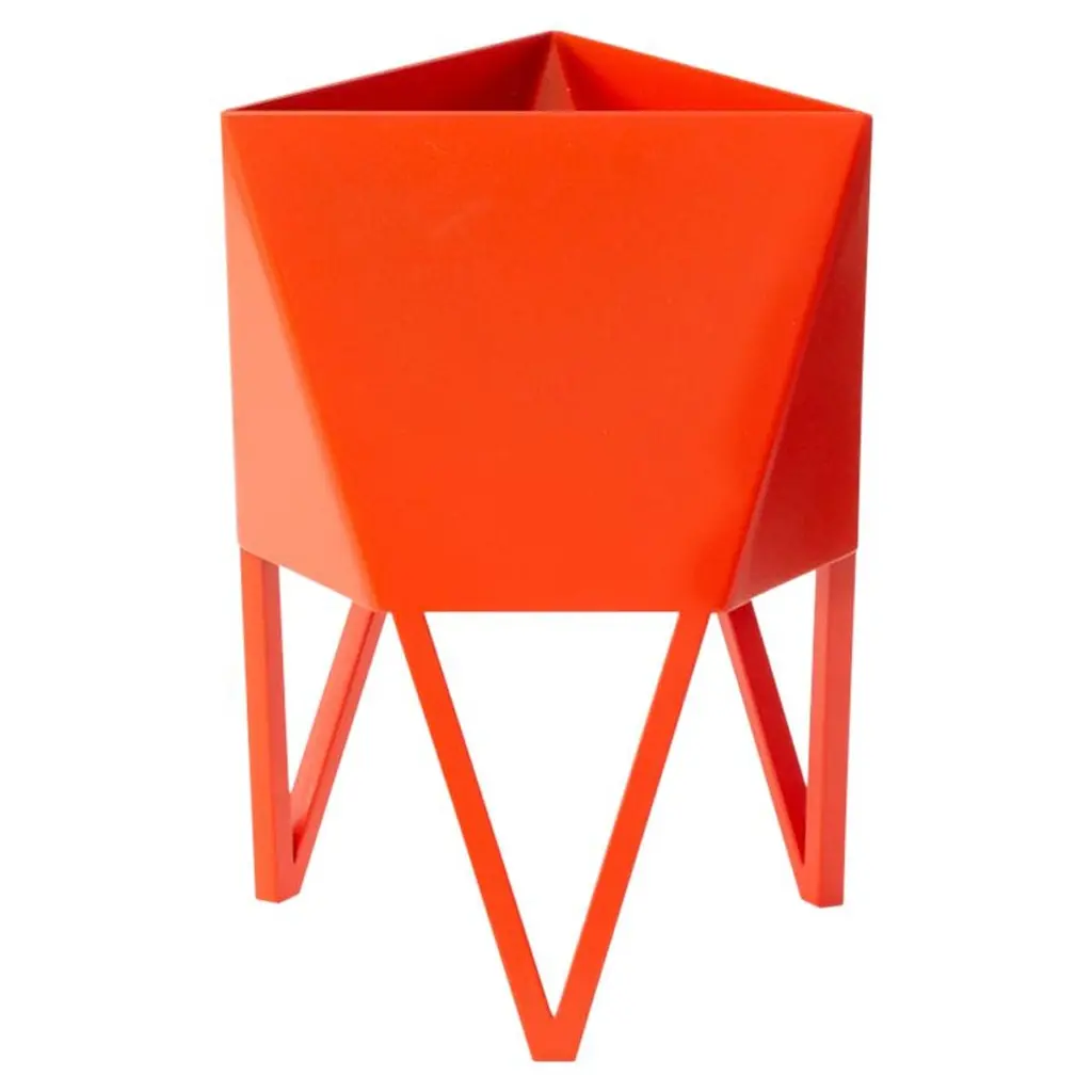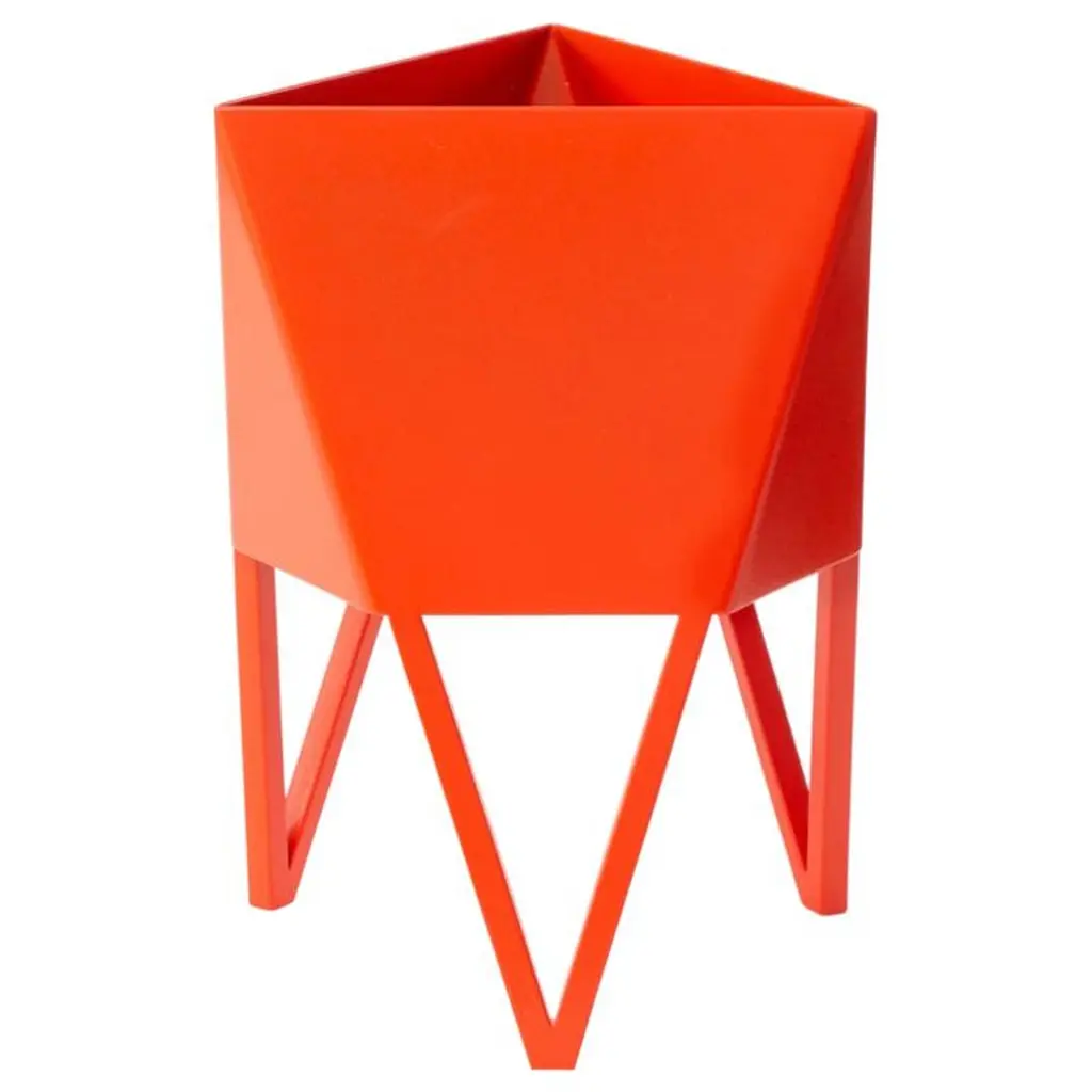 Force/Collide's award-winning signature planter is an ongoing production available in multiple colors and sizes. This original design is a nod to playful perspectives and spatial relationships. Proportions are thoughtful in aesthetic while optimizing function and user flexibility. The potting basin is built with extra volume for plants to grow, while integral legs serve as a built-in stand. The Deca Planter is an elevated home accent for plant lovers with refined craftsmanship and bold personality.The Deca Planter comes in a powder coated finish that offers bold color accents as well as protection against corrosion. Available in four sizes and five colors, optional drainage holes are integral to the design, (sealing plugs provided with purchase). Plants can be potted directly or easily exchanged if kept in nursery pots. We build all Deca Planters by hand in small quantity batches in the Force/Collide studio.The Deca in White is a a high-gloss, ultra durable true white. Optimal in both indoor and outdoor setting.Force/Collide received a Carol Duke Artist Award of Excellence from Bellevue Arts Museum at Arts Fair in 2018 and again in 2021 for the Deca Planters. They have been selected for exhibits at American Design Club for NY Design Week, 1stdibs Gallery and WorkOf.