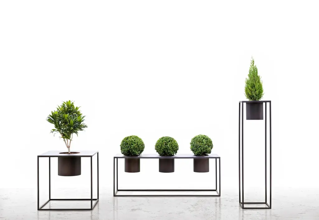 “I’ve always been drawn to nature as it manifests its strength in unexpected contexts”. With this, Aldo Cibic built a miniature natural landscape, poetically made of structures, containers and objects to house small gardens, both indoors and outdoors. With a minimal, simple design and a thin, barely-there frame, the lightness of the lines converges to exalt the ezxpressiveness of the metals and the sensory nature of their surfaces.Additional Information:Material: Bronze stainless steelFinish: D3 burnished stainless steel AISI 304 DeMaistralDimensions: W. 60 x D. 60 x H. 60 cm Available in other finish options: D3 Bronzed DeMaistral iron, D8 RAL9010 lacquered iron and D8 RAL9010 lacquered stainless steelAvailable in other size options: W. 32 x D. 32 x H. 90 cm
