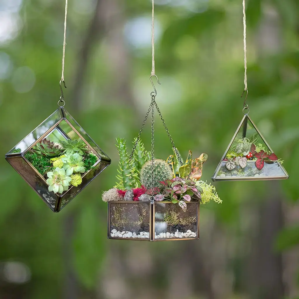 D'eco Hanging Glass Triangle Plant Terrarium- Copper Geometric Planter Terrarium - Home, Garden & Office Decor- Gift For Plant Lovers