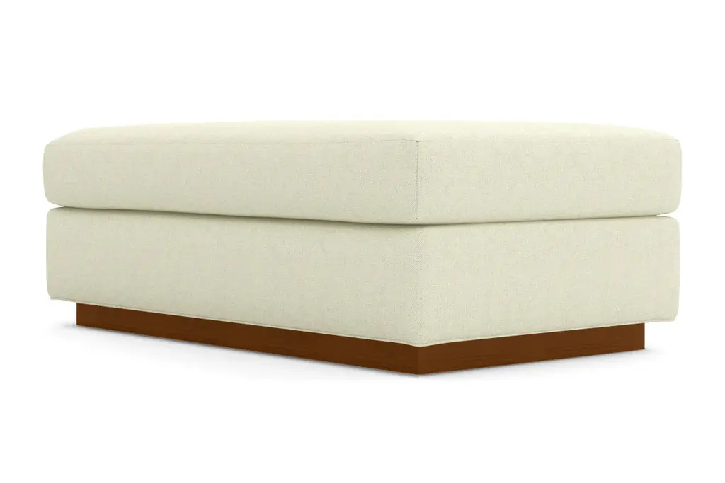 It's strong and handsome with a soft side. A slim base balances the oversized cushion. Perfect for resting your feet or extra seating. Covered in your choice of luxe leather.