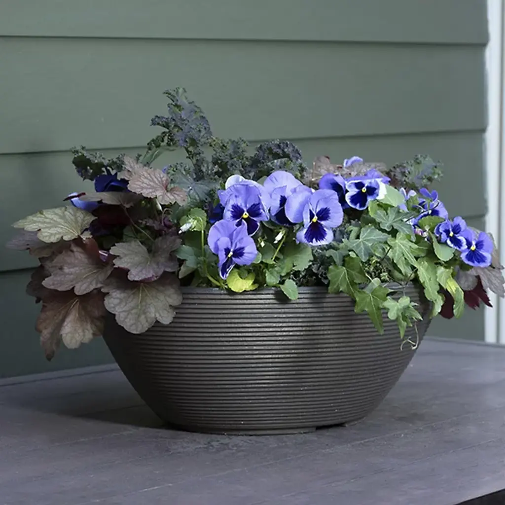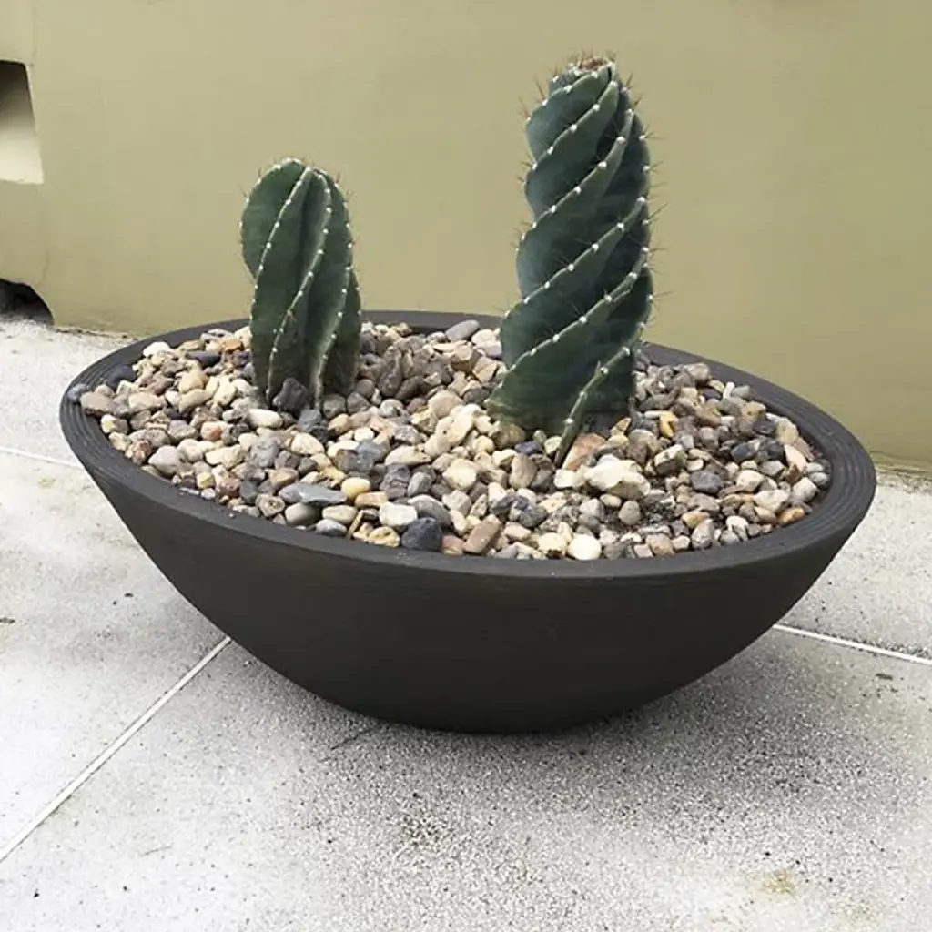 The Crescent Garden Delano Indoor/Outdoor Oval-Shape Planter Bowl has a smooth oval form made by rotation molding polymer resin. Its clean curves are enhanced by a subtle ribbed texture on the exterior. The largest available size comes with a drainage hole plug system that offers you the alternative of using it as a water garden or fountain.