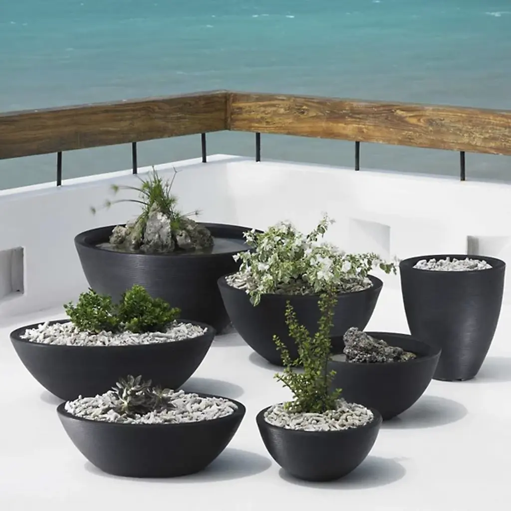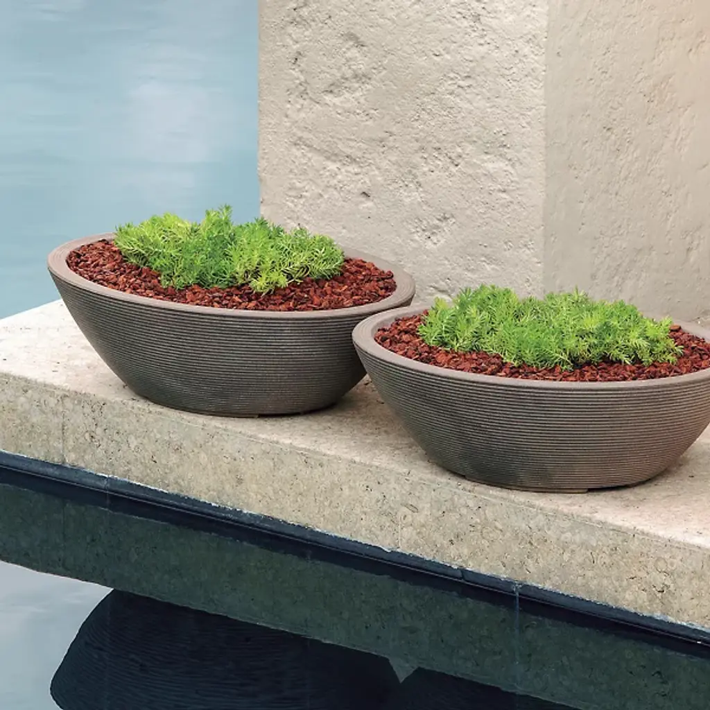 The Crescent Garden Delano Indoor/Outdoor Oval-Shape Planter Bowl has a smooth oval form made by rotation molding polymer resin. Its clean curves are enhanced by a subtle ribbed texture on the exterior. The largest available size comes with a drainage hole plug system that offers you the alternative of using it as a water garden or fountain.
