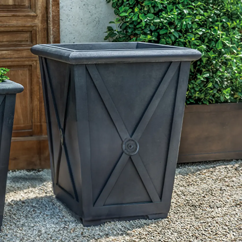 Designed with durability in mind, this cast-stone planter was made in the USA using locally sourced natural materials. Its hand-applied patina adds gravitas to its classic design. The planter has a drainage hole in the bottom.