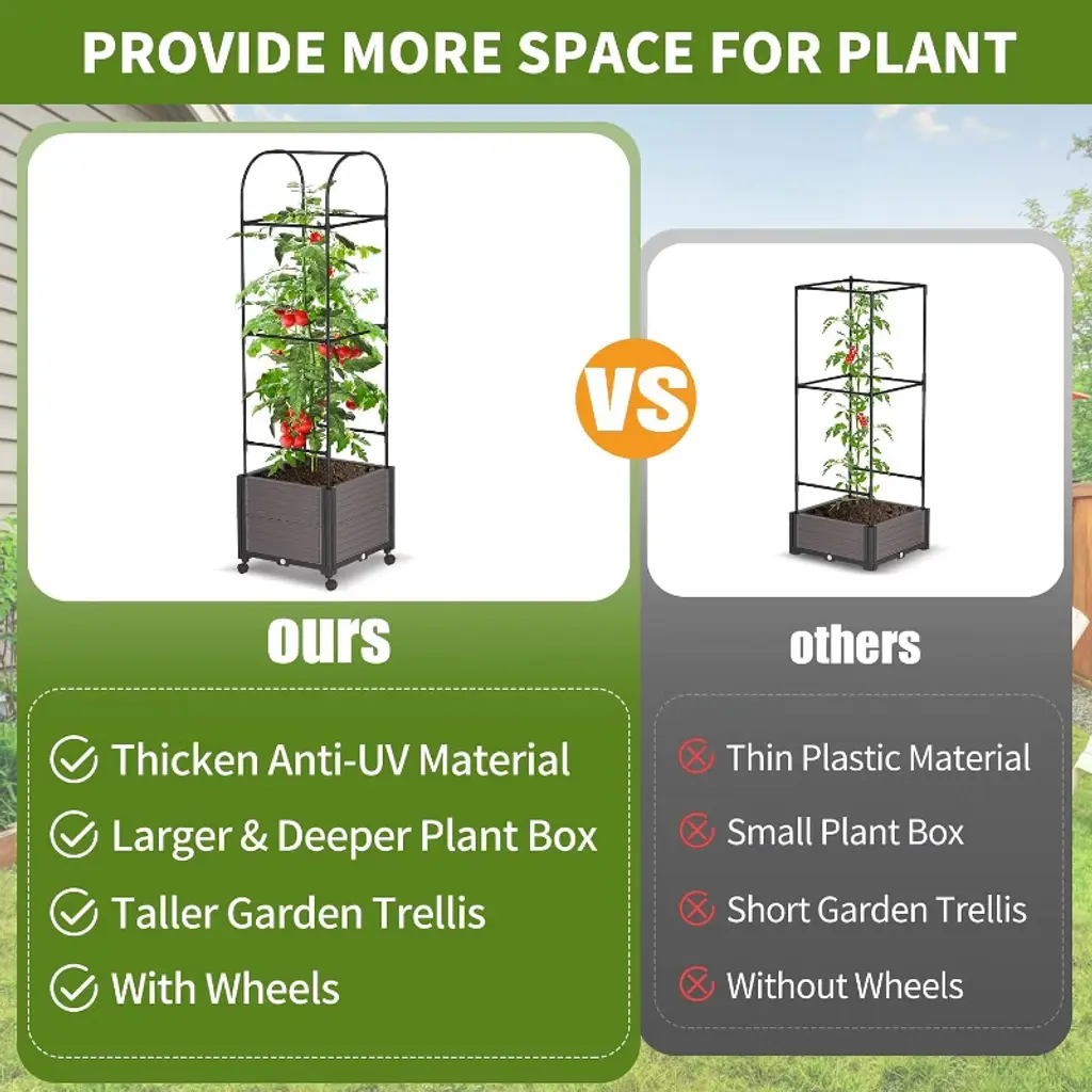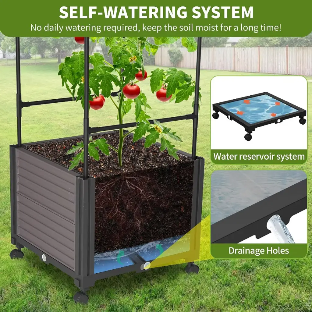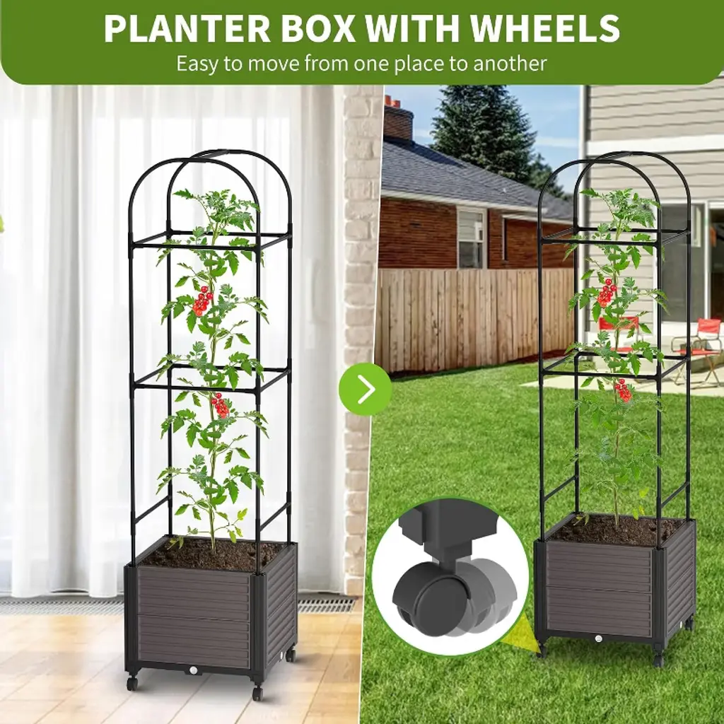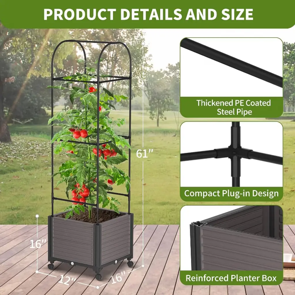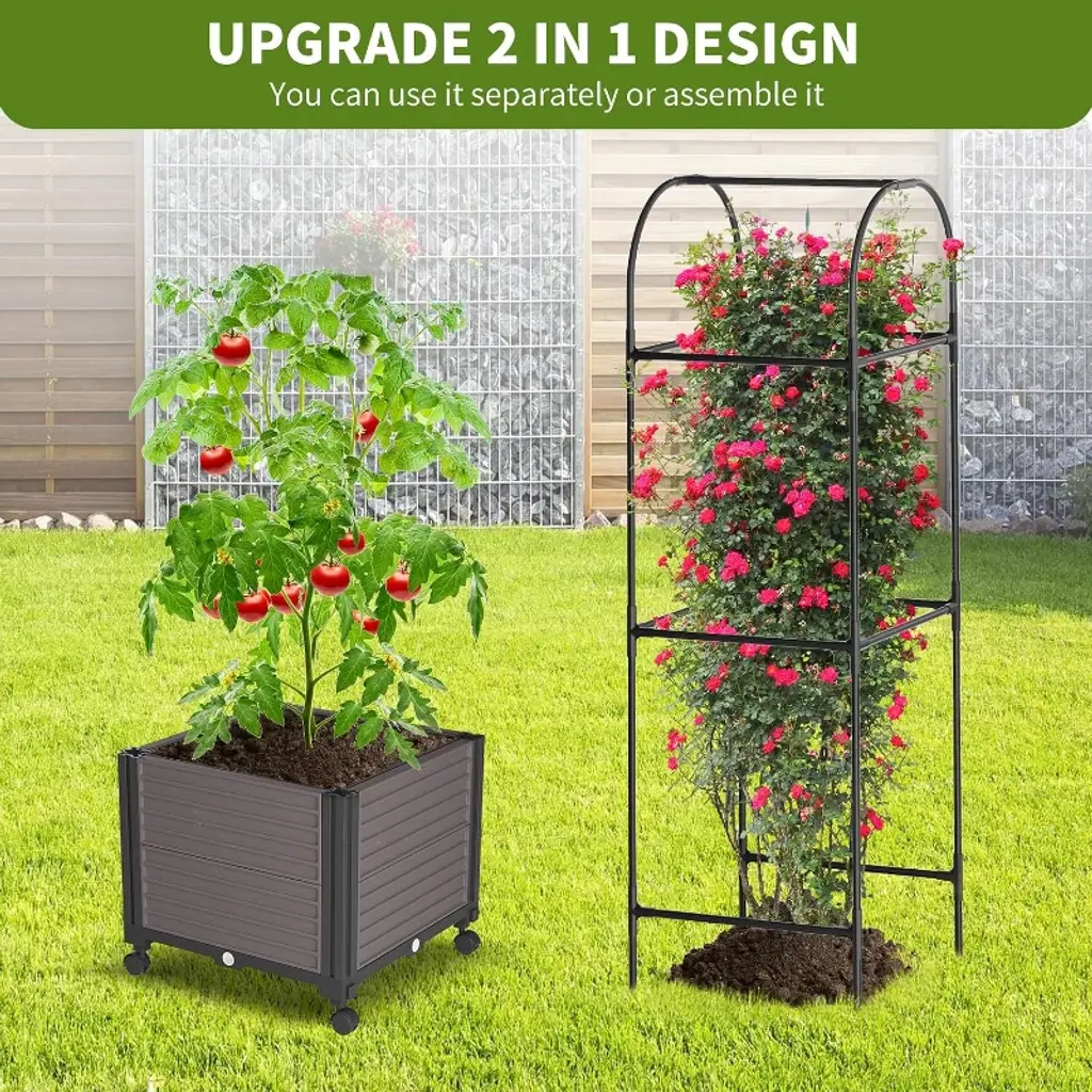 Docred Raised Garden Bed Planter With Wheels & Trellis, Tomato Cage Planter Box For Climbing Vegetables – Indoor/outdoor Use