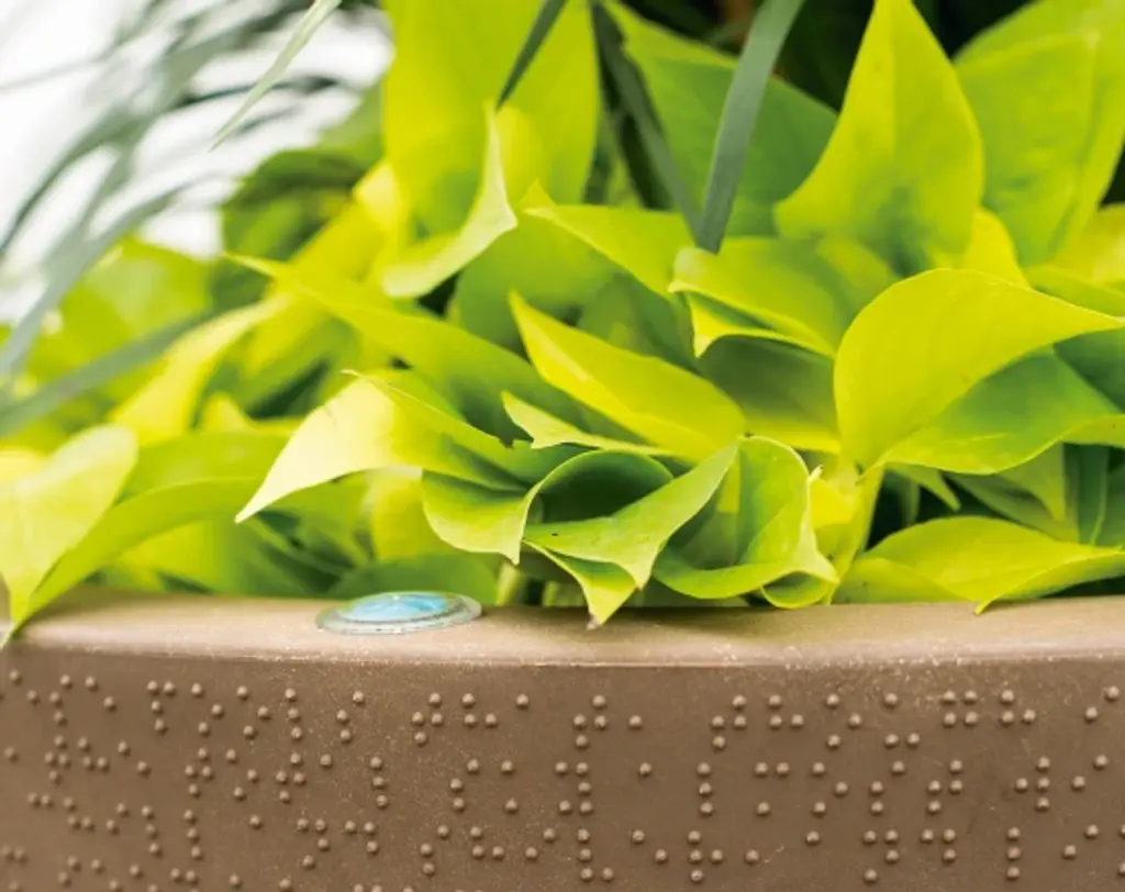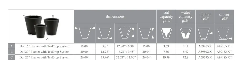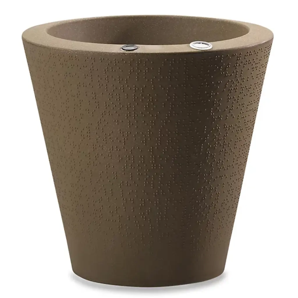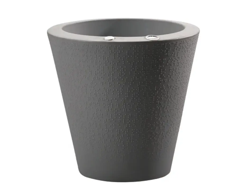 We believe gardens can connect with people just like languages. Our Dot planter was designed with Braille wrapped around this container to create a one-of-a-kind texture that reminds us of the beauty in communication. This self-watering plant pot is a beautiful addition to both traditional and modern spaces. Stage the different sizes together to create groupings of different plants. The Dot planter features a built-in TruDrop One system. It is an innovative self-watering technology that reduces the need for frequently watering your potted plants. The built-in reservoir provides a steady and timely supply of water to plants. It is perfect for a healthy plant growth and stress-free maintenance. Trudrop self-watering planters will let you go weeks without watering. An easy to read water level indicator takes the guesswork out of watering, while the large water reservoir lets your roots take the water they need for successful gardening in containers.