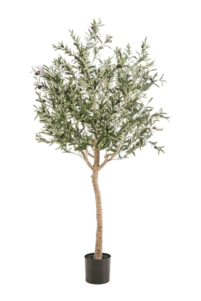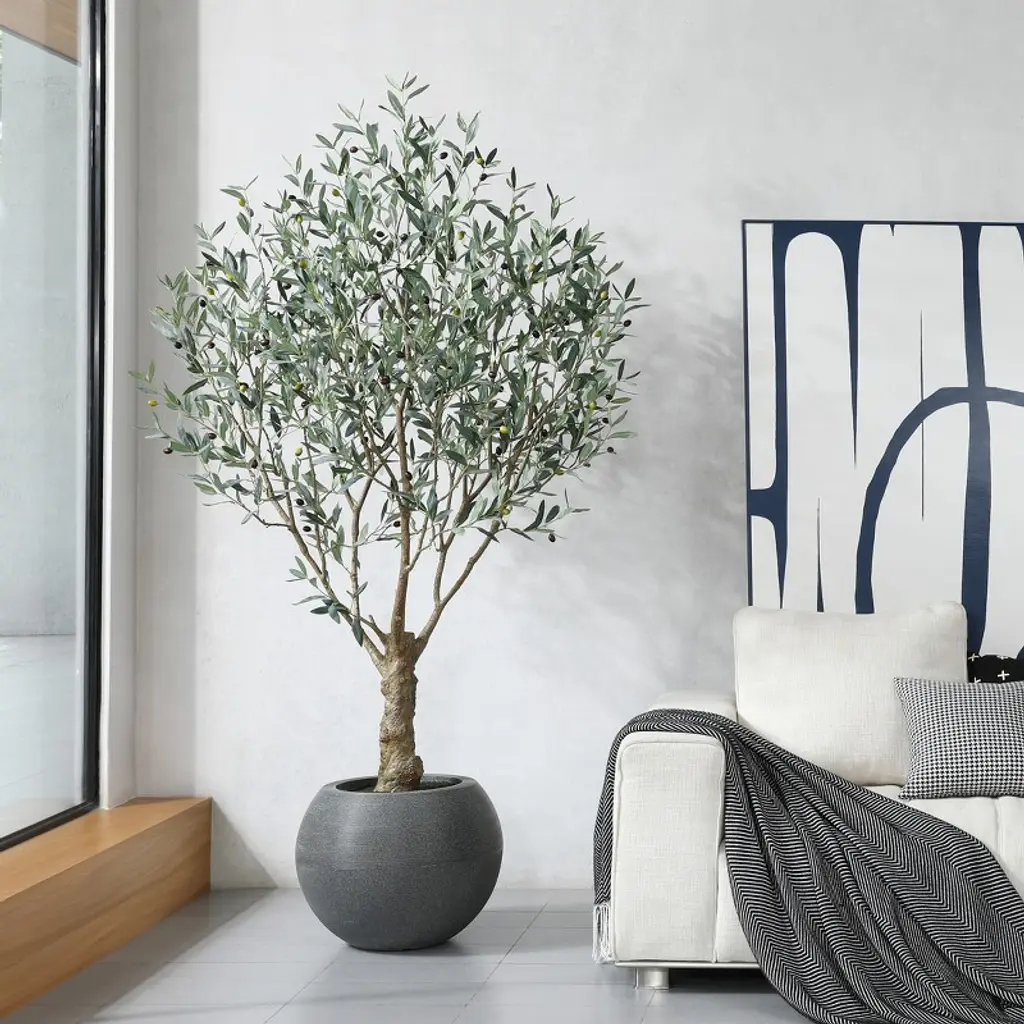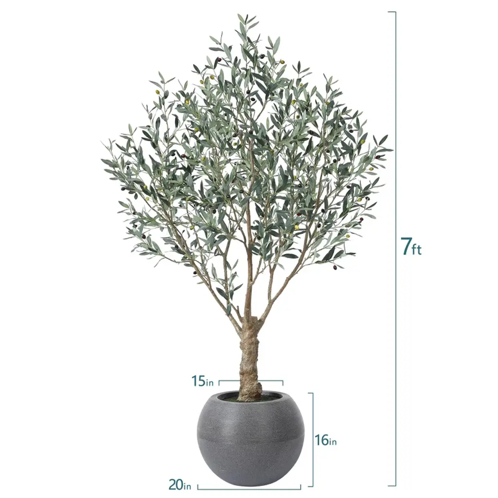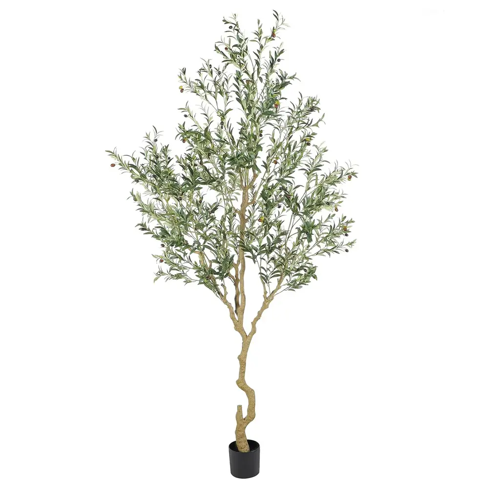 Introducing the Artificial Olive Tree, the perfect solution for anyone seeking the beauty and elegance of real plants without the maintenance. This magnificent faux tree is a true masterpiece that boasts intricate detailing and a lifelike appearance, making it almost indistinguishable from its living counterpart.Our Artificial Olive Tree measures in at an impressive 8 feet, making it the perfect addition to any home decor or office setting. This beautiful tree comes complete with a grey tall planter, which enhances its natural beauty and makes it an excellent accent piece. The tree features realistic-looking olives and leaves, which are expertly crafted to mimic the texture and appearance of the real thing.Whether you're looking to add some greenery to your home or office, the Artificial Olive Tree makes it easy and hassle-free. Unlike real plants, our fake plants don't require any watering, pruning, or care of any kind. Moreover, it is UV-resistant, and you don't have to worry about it fading from sunlight or other environmental factors. So why deal with the hassle and maintenance of real plants when you can enjoy the same beauty and elegance with the Artificial Olive Tree? Our faux tree is a stunning work of art that is sure to impress your guests and add a touch of nature to any space. Order yours today and indulge in the beauty of nature without the fuss.