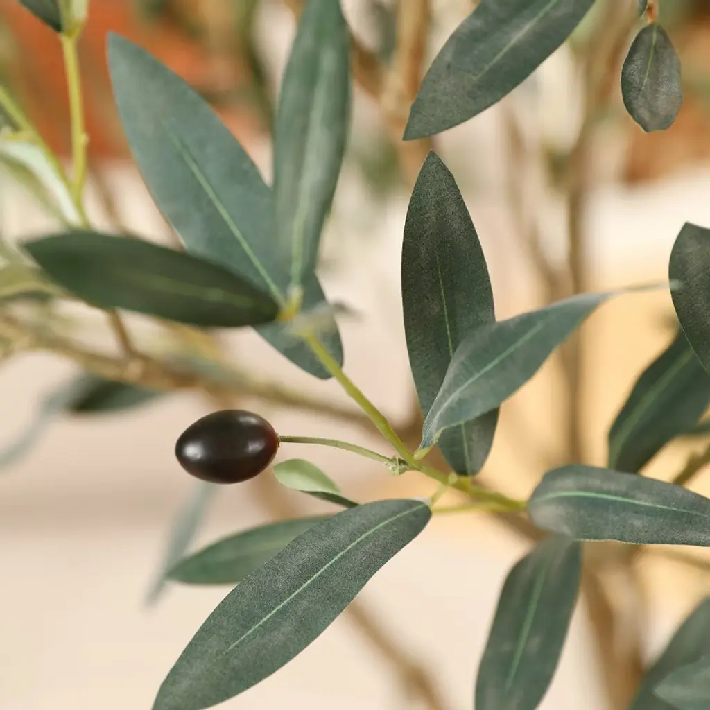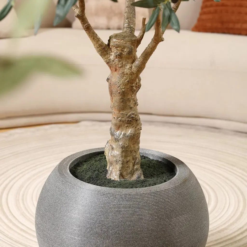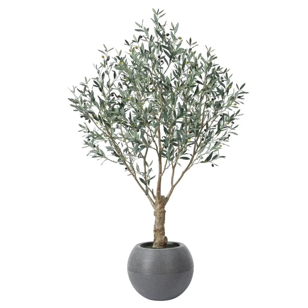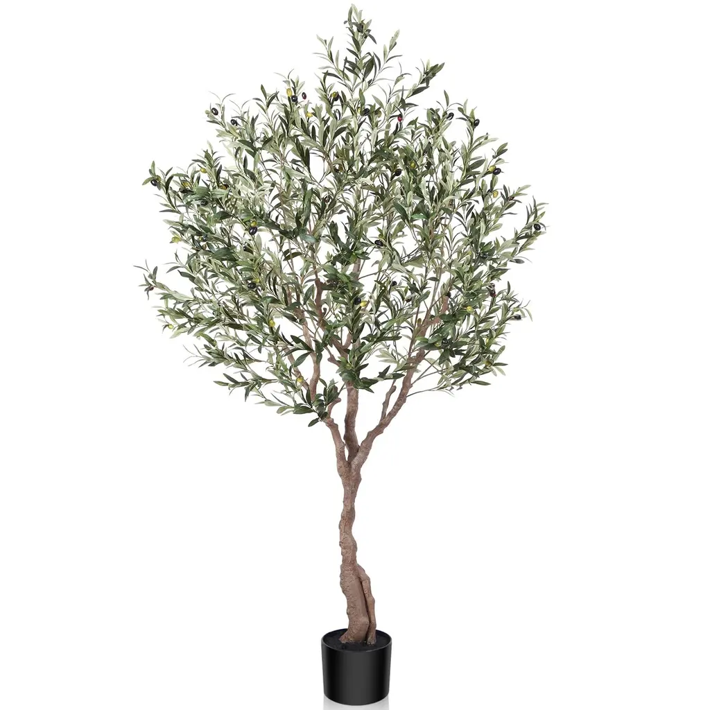 Introducing the Artificial Olive Tree, the perfect solution for anyone seeking the beauty and elegance of real plants without the maintenance. This magnificent faux tree is a true masterpiece that boasts intricate detailing and a lifelike appearance, making it almost indistinguishable from its living counterpart.Our Artificial Olive Tree measures in at an impressive 8 feet, making it the perfect addition to any home decor or office setting. This beautiful tree comes complete with a grey tall planter, which enhances its natural beauty and makes it an excellent accent piece. The tree features realistic-looking olives and leaves, which are expertly crafted to mimic the texture and appearance of the real thing.Whether you're looking to add some greenery to your home or office, the Artificial Olive Tree makes it easy and hassle-free. Unlike real plants, our fake plants don't require any watering, pruning, or care of any kind. Moreover, it is UV-resistant, and you don't have to worry about it fading from sunlight or other environmental factors. So why deal with the hassle and maintenance of real plants when you can enjoy the same beauty and elegance with the Artificial Olive Tree? Our faux tree is a stunning work of art that is sure to impress your guests and add a touch of nature to any space. Order yours today and indulge in the beauty of nature without the fuss.