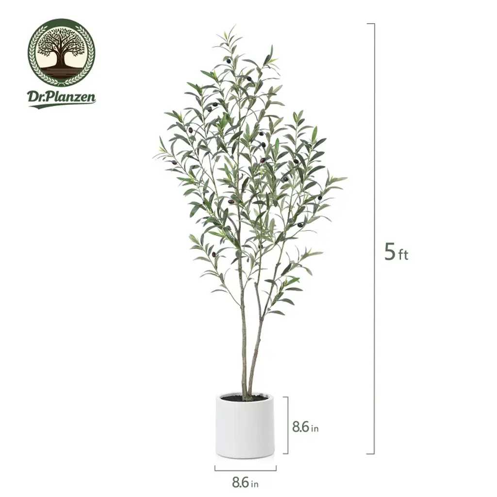 Dr.planzen Artificial Olive Trees, 5 Ft Tall Fake Olive Trees For Indoor, Large Olive Plants With White Planter For Home Decor And Housewarming Gift