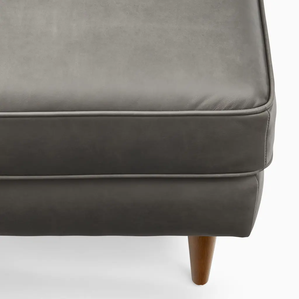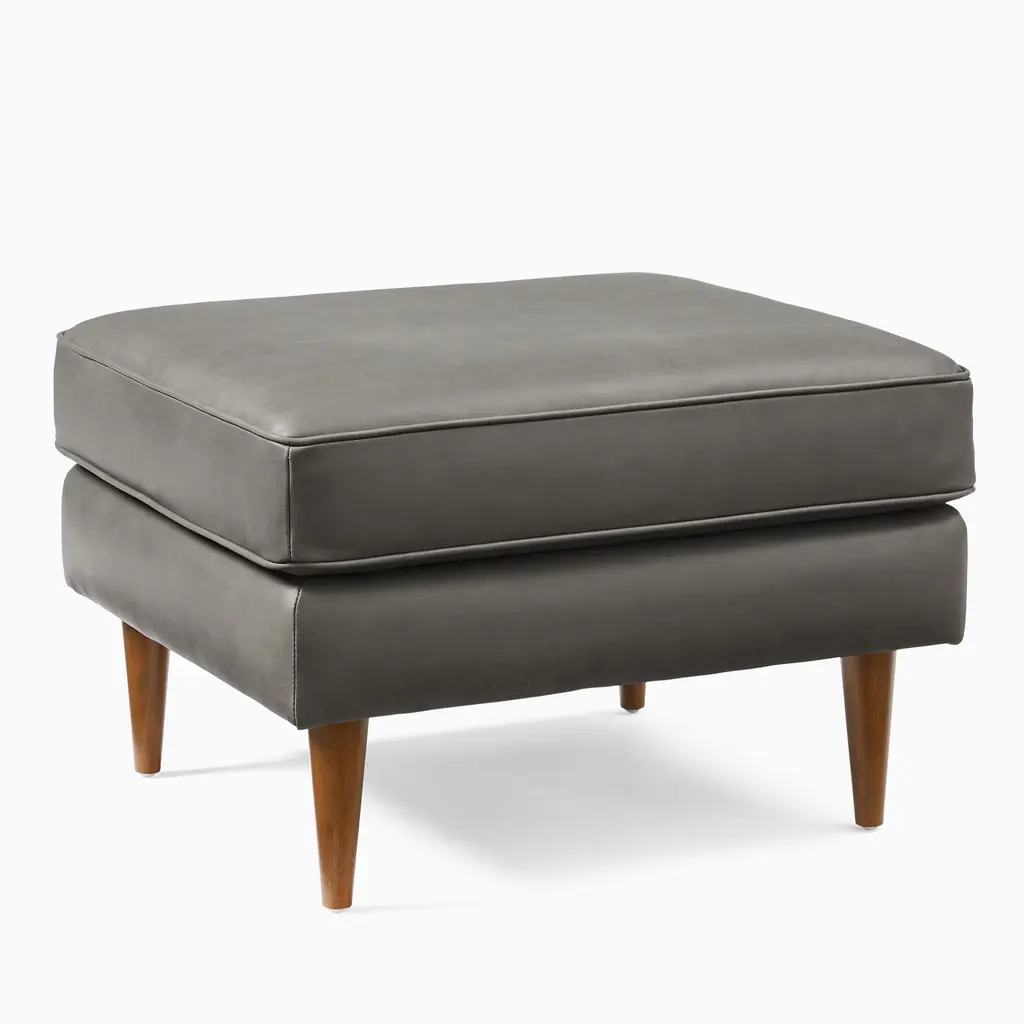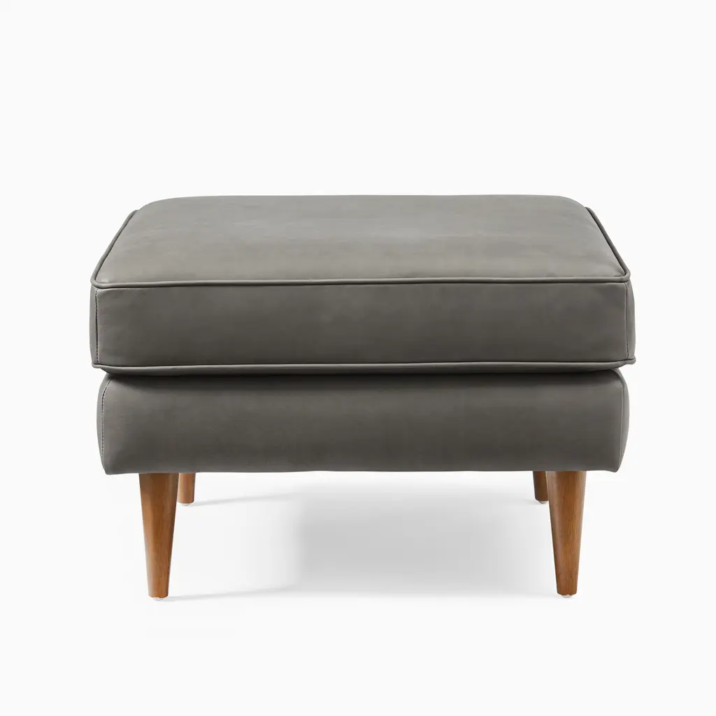 Our Drake Ottoman features crisp lines, tapered wooden legs and plush cushioning with genuine or vegan leather upholstery. It's the perfect spot to rest your feet or grab a seat.