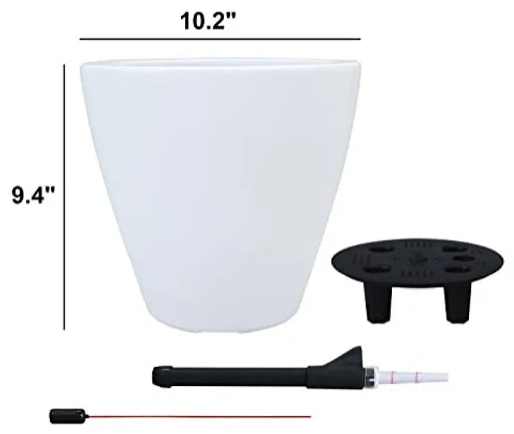 For those looking for natural, earthy tones to match all interior and exterior designs, our wood imitation pots are just what you"™re looking for! Breathable and absorbent, our expertly handcrafted silky-smooth wood imitation pots not only prevent soil disease and root rot but are also eco-friendly and long-lasting. Plus, with our various sizes available and clever smart-watering system, these pots match up perfectly with a huge array of plants, flowers, and succulents of all colors and sizes.SELF-WATERING: Sub-irrigation from a reservoir keeps plants nourished, even when you"™re not at home up to a weekECO-FRIENDLY: Being made from recyclable material, it not only takes care of plants but also the environmentWEATHER RESISTANT: Being UV stabilized and frost resistant this durable planter is perfect for all weatherDRAINAGE PLUG: Don"™t worry about rain and oversaturation when installed outdoors, removing the plug drains excess rainwater for youEASE OF ASSEMBLY: Simple design and lightweight structure makes it easy to assemble, move or storeBEAUTIFUL WOOD IMITATE FINISH: wood look but not wood!Water level indicator includedMade in Vietnam
