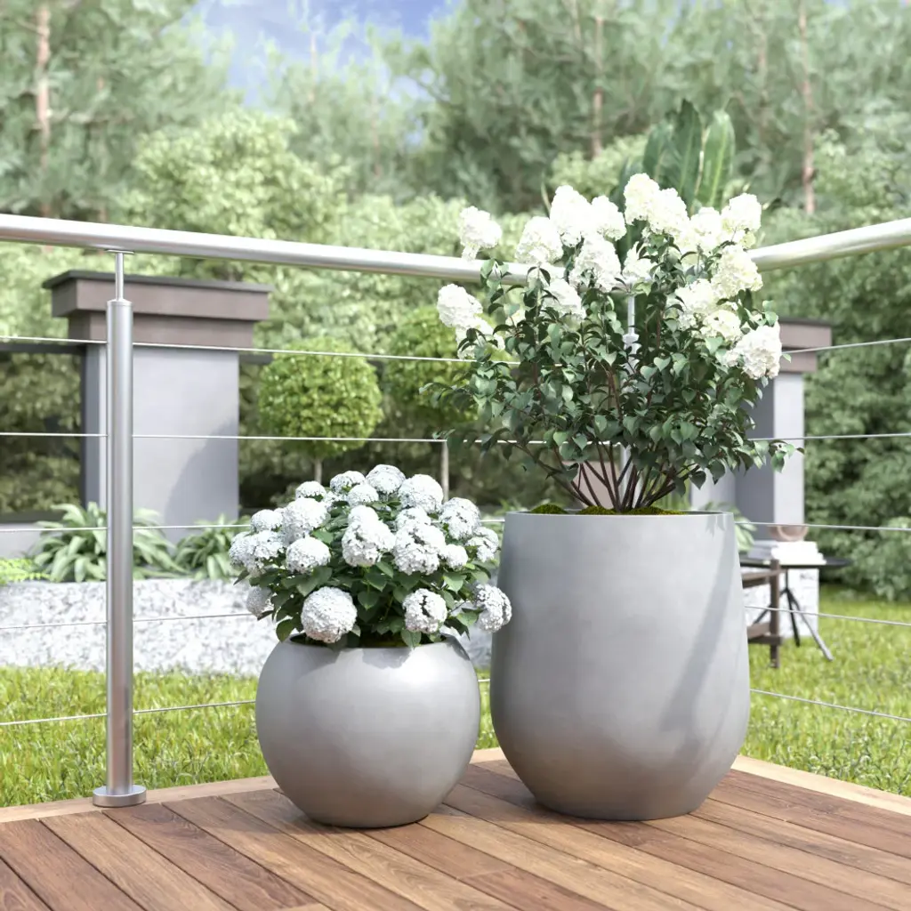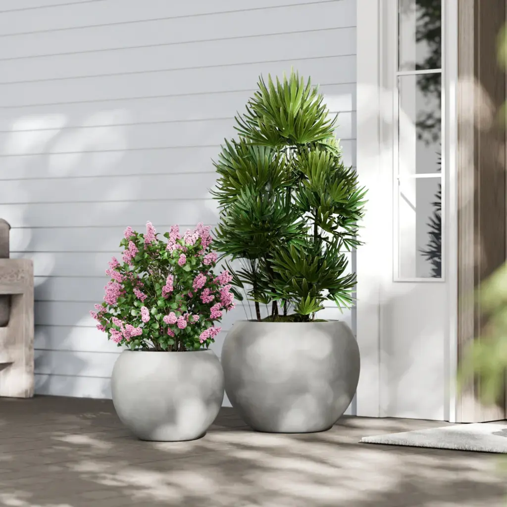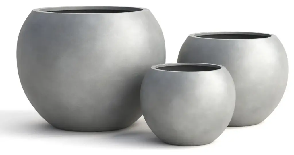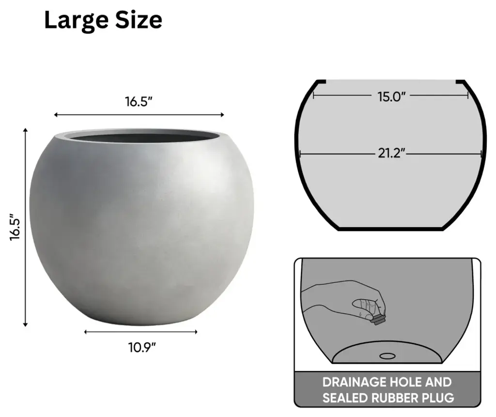 Wide and round like a sphere but with the top cut off, the Mount Sherman planter stands out from the crow. Whether clustered together as a striking group or displayed solo as a standout statement piece, these modern planters exude a unique charm. Crafted from a durable fiberstone composite material, these planters combine fiberglass and natural crushed stone powder, resulting in a lightweight yet ultra-durable construction that can withstand freezing temperatures and high-traffic environments.•DURABLE & LIGHTWEIGHT: This stylish planter is meticulously crafted from a lightweight fiberstone composite material. The fusion of fiberglass and natural crushed stone powder enhances the planter''s strength and durability, all while maintaining a lighter weight compared to traditional stone planters. •WEATHER RESISTANT: Embodying resilience, fiberstone planters are impervious to frost, UV rays, and cracking, making them an ideal choice for both indoor and outdoor settings. Featuring a .6-inch drainage hole and a convenient rubber plug, these planters support proper watering techniques and create optimal growing conditions for your plants.•STYLISH DESIGN: The modern sphere planter is available in a diverse range of captivating colors and sizes, ensuring a seamless fit in any space. Boasting an industrial-chic design aesthetic, these planters introduce a contemporary elegance that effortlessly elevates the ambiance of your living space.•SMALL PLANTER MEASURES: 10" height x 13" diameter (pot opening 8")•MEDIUM PLANTER MEASURES: 13.5" height x 17" diameter (pot opening 10")•LARGE PLANTER MEASURES: 17" height x 21" diameter (pot opening 14.4")•BUY WITH CONFIDENCE: Our customers'' satisfaction means everything to us. We take pride in our product"™s superior quality and craftsmanship. If for any reason you are at all unsatisfied with your purchase, simply contact us. We are so confident in our products that we offer a 30-day limited warranty (see item warranty information for details).•Made In Vietnam