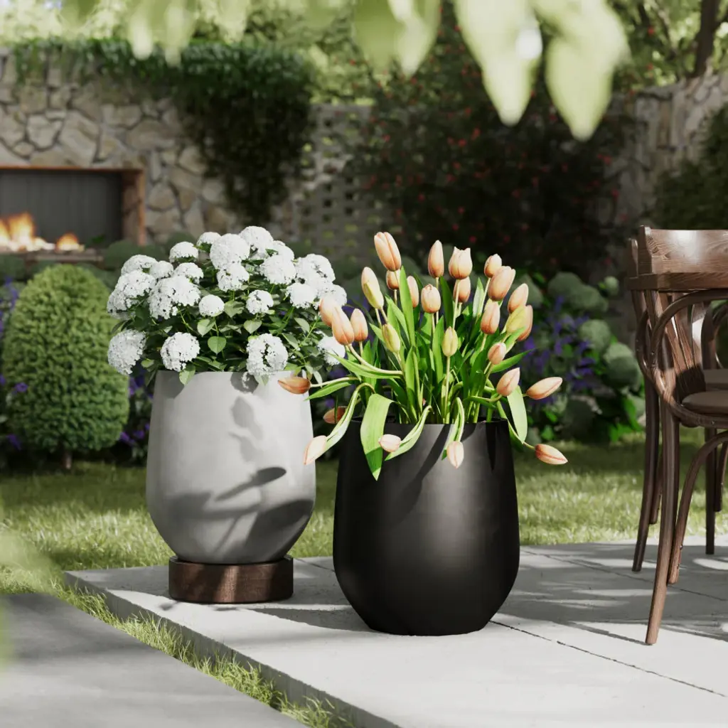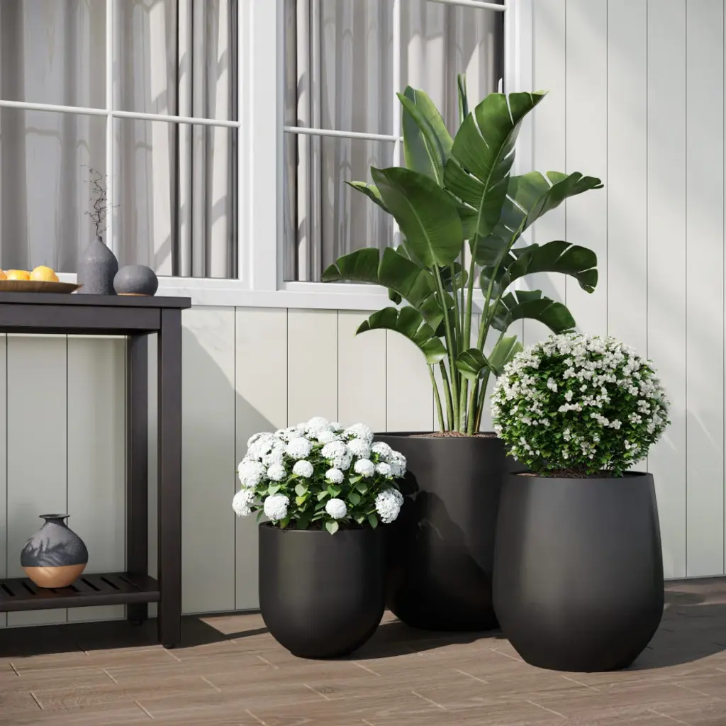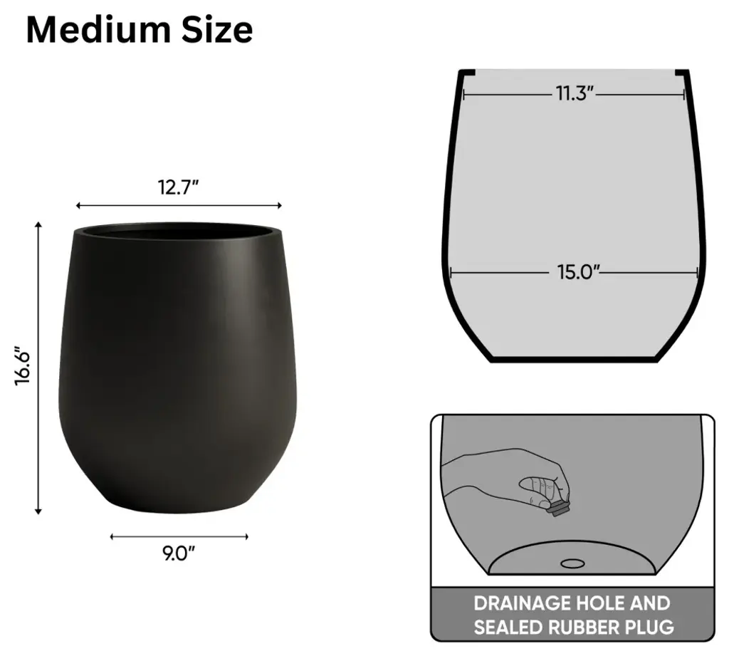 Mount Wilson planters are a perfect blend of style and functionality for plant lovers. The striking flared design makes it a captivating addition to any space. Our planter is crafted from a lightweight fiberstone composite material, blending fiberglass and natural crushed stone powder to provide added strength and durability while remaining lighter than typical stone planters. These planters would be a great addition to any outdoor or indoor space. Enjoy the combination of style and functionality that the Mount Wilson planters offer!•DURABLE & LIGHTWEIGHT: The fiberstone composite material ensures that they are lighter in weight yet still strong and durable. •WEATHER RESISTANT: Fiberstone planters are resistant to frost, UV rays, and cracking, making them perfect for indoor or outdoor use. The .6-inch drainage hole and included rubber plug ensure proper watering and optimal growing conditions for your plants. •STYLISH DESIGN: This modern tapered planter comes in a range of colors and sizes to suit any space especially when used as a single standalone or grouped in a set of three for a striking visual impact. Its contemporary industrial style brings a touch of modern elegance into your home.•SMALL PLANTER MEASURES: 11.8" height x 11" diameter (pot opening 8")•MEDIUM PLANTER MEASURES: 16.7" height x 15" diameter (pot opening 11.7")•LARGE PLANTER MEASURES: 21.7" height x 20" diameter (pot opening 15.7")•BUY WITH CONFIDENCE: Our customers'' satisfaction means everything to us. We take pride in our product"™s superior quality and craftsmanship. If for any reason you are at all unsatisfied with your purchase, simply contact us. We are so confident in our products that we offer a 30-day limited warranty (see item warranty information for details).•Made In Vietnam
