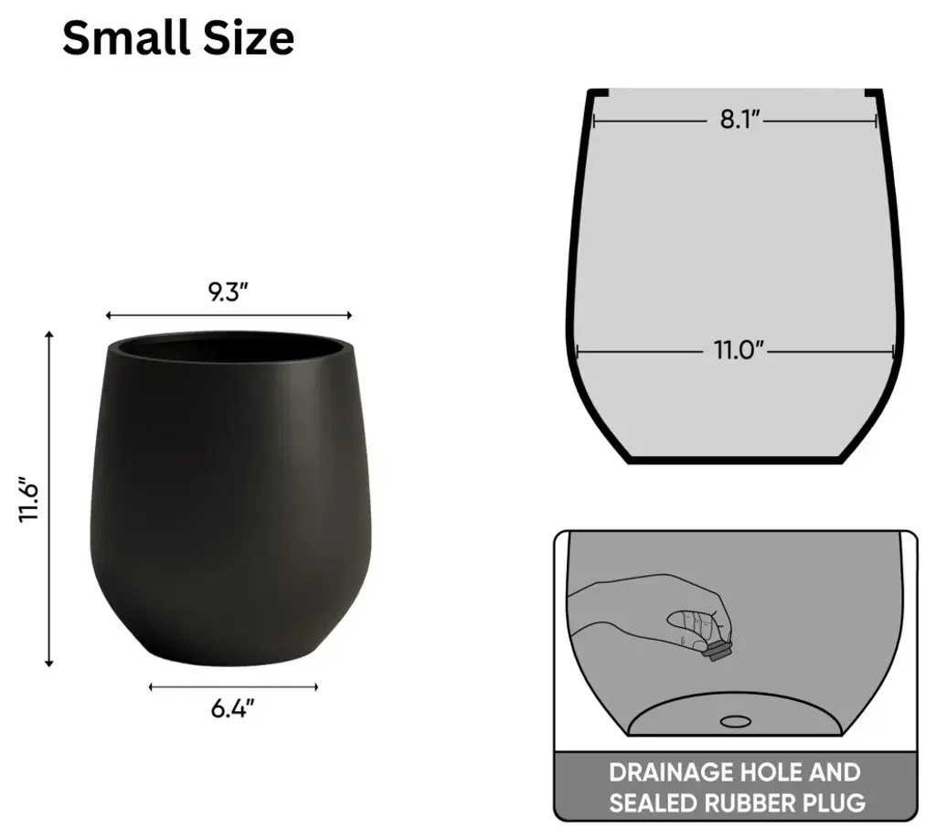 Mount Wilson planters are a perfect blend of style and functionality for plant lovers. The striking flared design makes it a captivating addition to any space. Our planter is crafted from a lightweight fiberstone composite material, blending fiberglass and natural crushed stone powder to provide added strength and durability while remaining lighter than typical stone planters. These planters would be a great addition to any outdoor or indoor space. Enjoy the combination of style and functionality that the Mount Wilson planters offer!•DURABLE & LIGHTWEIGHT: The fiberstone composite material ensures that they are lighter in weight yet still strong and durable. •WEATHER RESISTANT: Fiberstone planters are resistant to frost, UV rays, and cracking, making them perfect for indoor or outdoor use. The .6-inch drainage hole and included rubber plug ensure proper watering and optimal growing conditions for your plants. •STYLISH DESIGN: This modern tapered planter comes in a range of colors and sizes to suit any space especially when used as a single standalone or grouped in a set of three for a striking visual impact. Its contemporary industrial style brings a touch of modern elegance into your home.•SMALL PLANTER MEASURES: 11.8" height x 11" diameter (pot opening 8")•MEDIUM PLANTER MEASURES: 16.7" height x 15" diameter (pot opening 11.7")•LARGE PLANTER MEASURES: 21.7" height x 20" diameter (pot opening 15.7")•BUY WITH CONFIDENCE: Our customers'' satisfaction means everything to us. We take pride in our product"™s superior quality and craftsmanship. If for any reason you are at all unsatisfied with your purchase, simply contact us. We are so confident in our products that we offer a 30-day limited warranty (see item warranty information for details).•Made In Vietnam